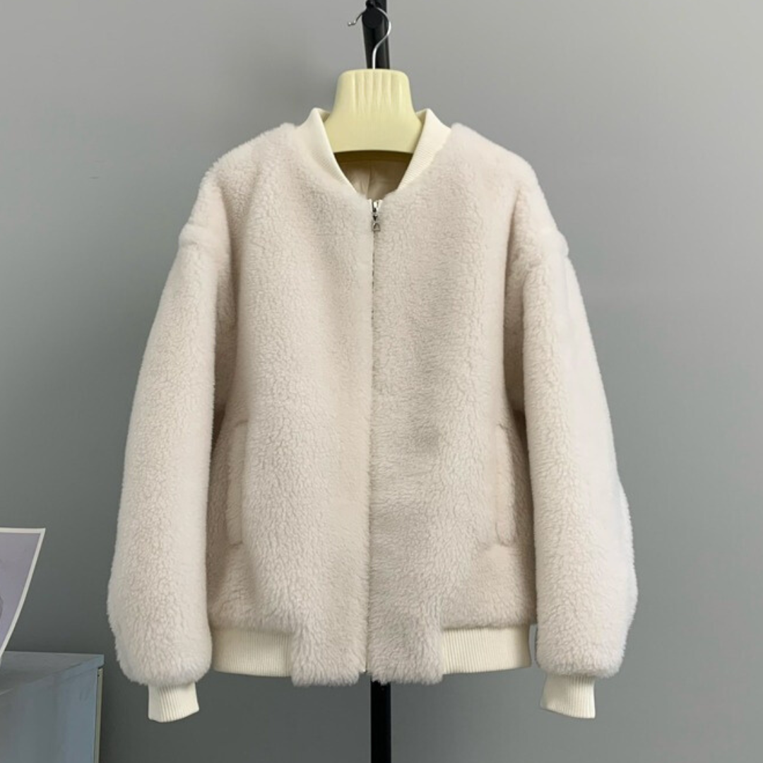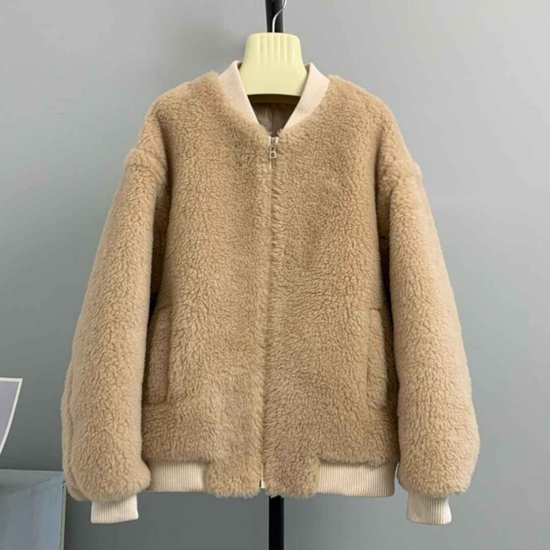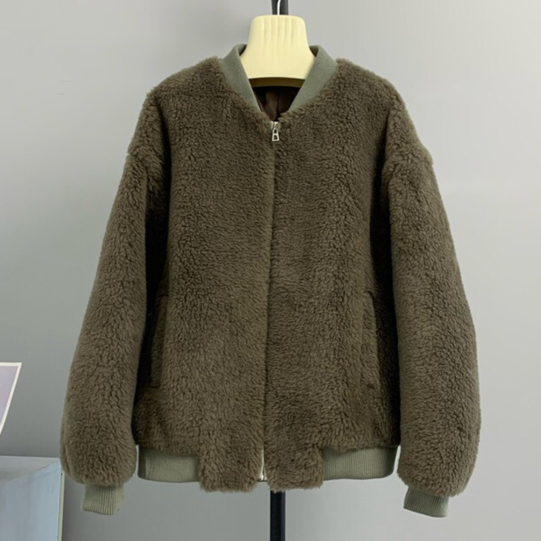 Made from faux fur. this jacket is perfect for staying cozy and fashionable during the colder months. With its oversized fit and convenient zip-up design. you'll never want to take it off.