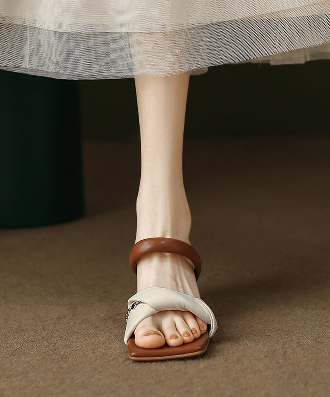 Fine Splicing Kitten Heels Purple Faux Leather Slide Sandals