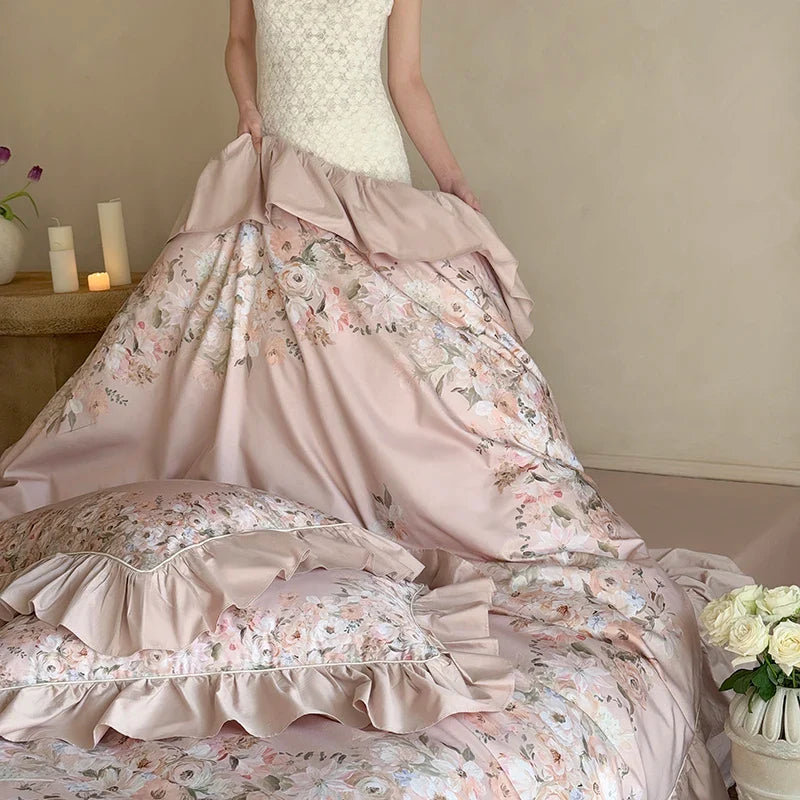 Floral Print Egyptian Cotton Bedding Sets Bed Linens Queen King Ru Size Underwear