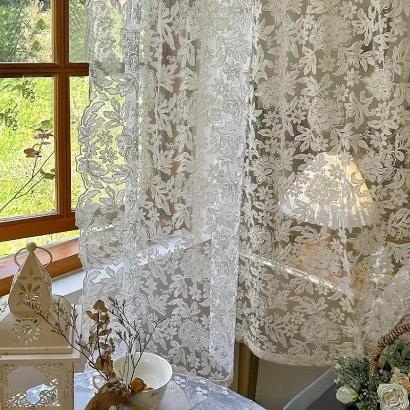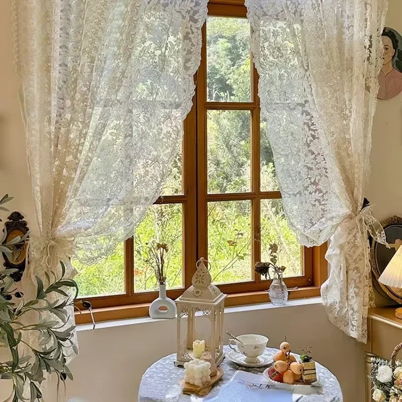 French Curtains Lace Gauze for Living Room Cream Retro Wavy Edge Bedroom Bay Window Girl Embroidery Curtain Door Decor Custom