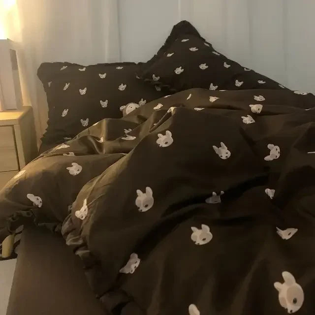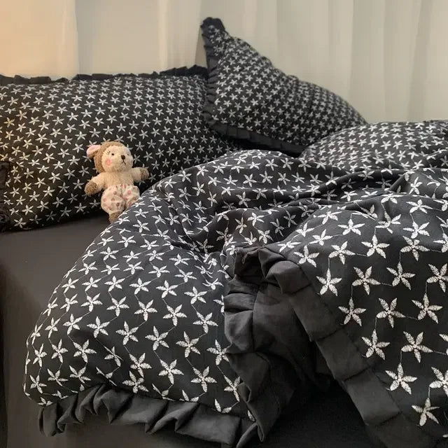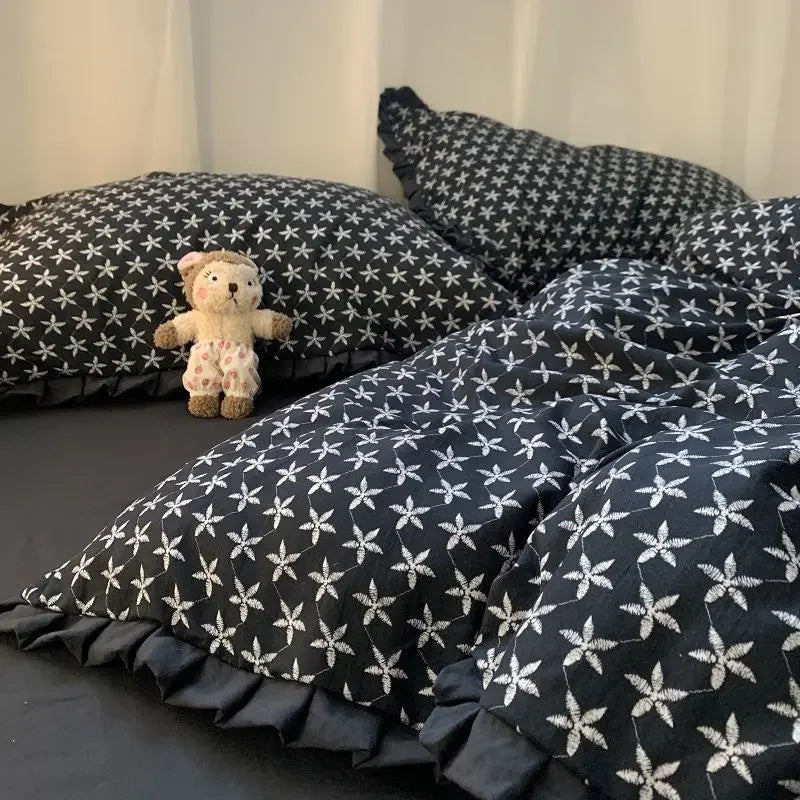 French Style Bedding Set Pastoral Colored Grape Double-layer Gauze Light Purple Washing Cotton Duvet Cover Bed Sheet Comforter