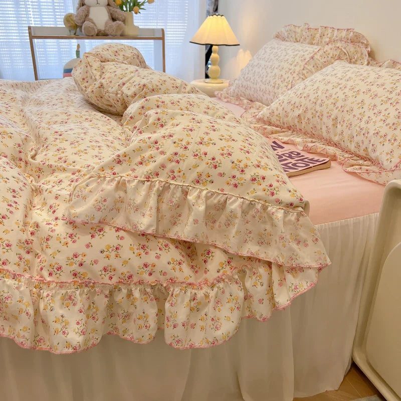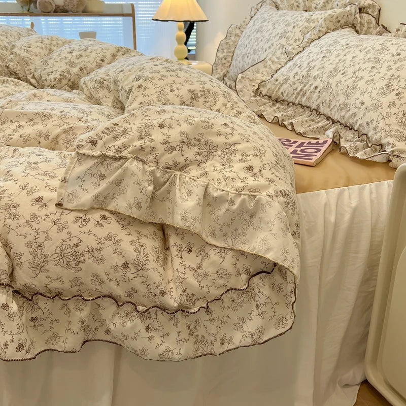 Fresh Botanical Floral Bedding Set for Kids and Adults. Leaves. Flower Duvet Cover. Pillowcases. Soft Washed Cotton. Home Textil