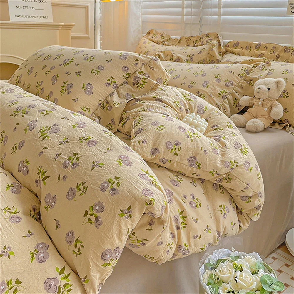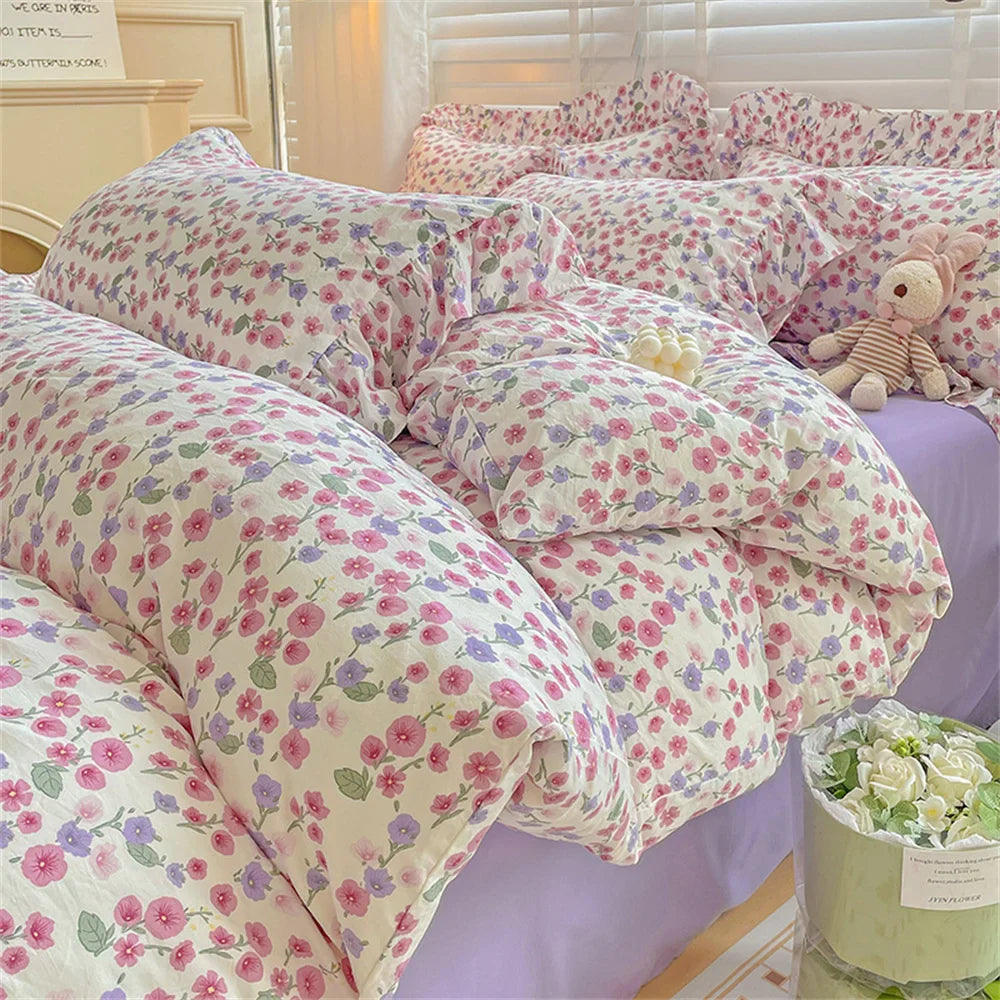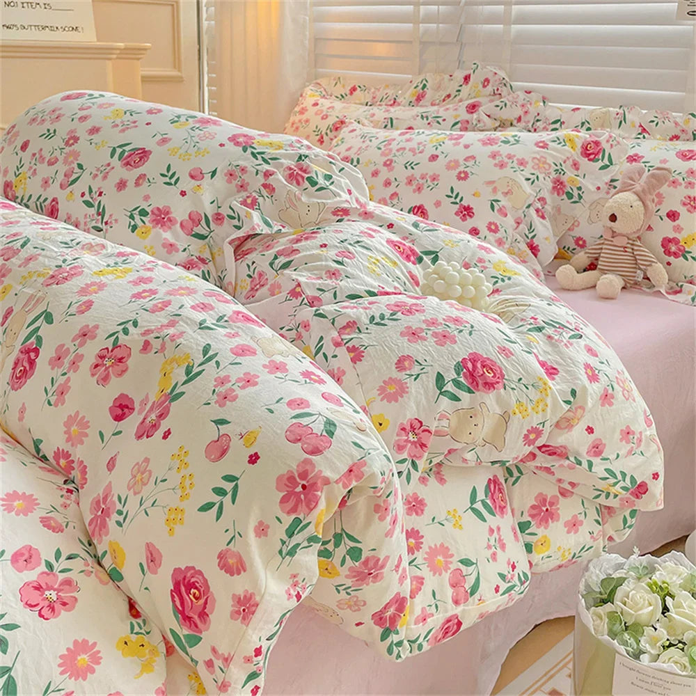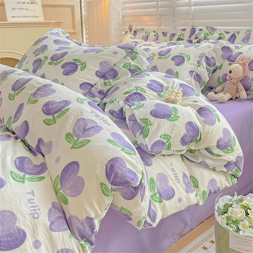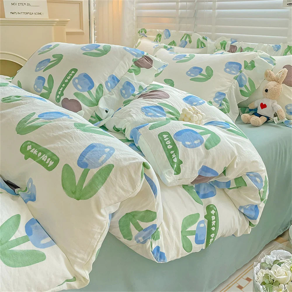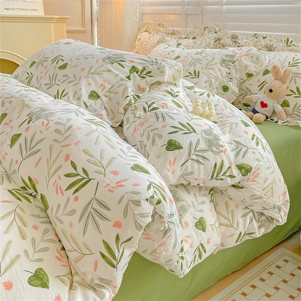 Fresh Plant Flower Bed Sheet for Children and Adults Four-Piece Bed Set Pillowcases Soft Washed Cotton Home Textiles