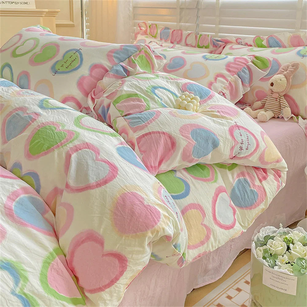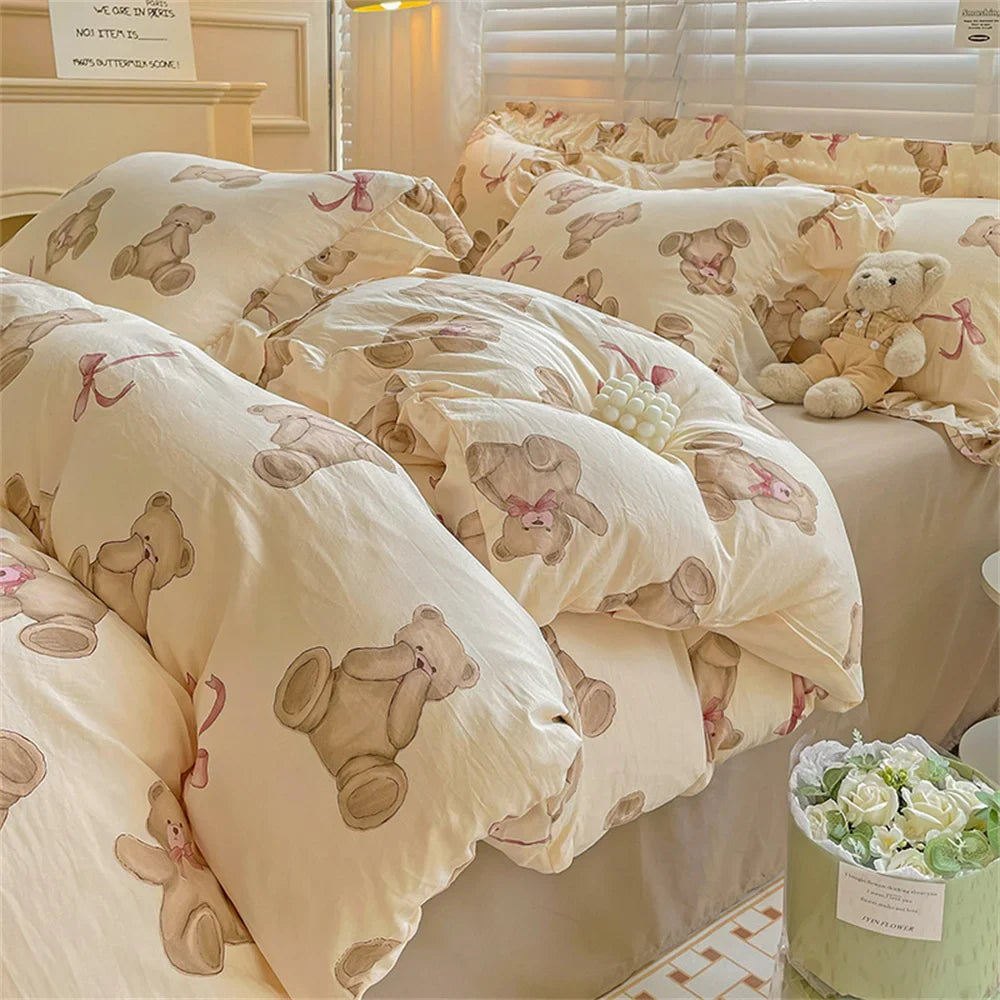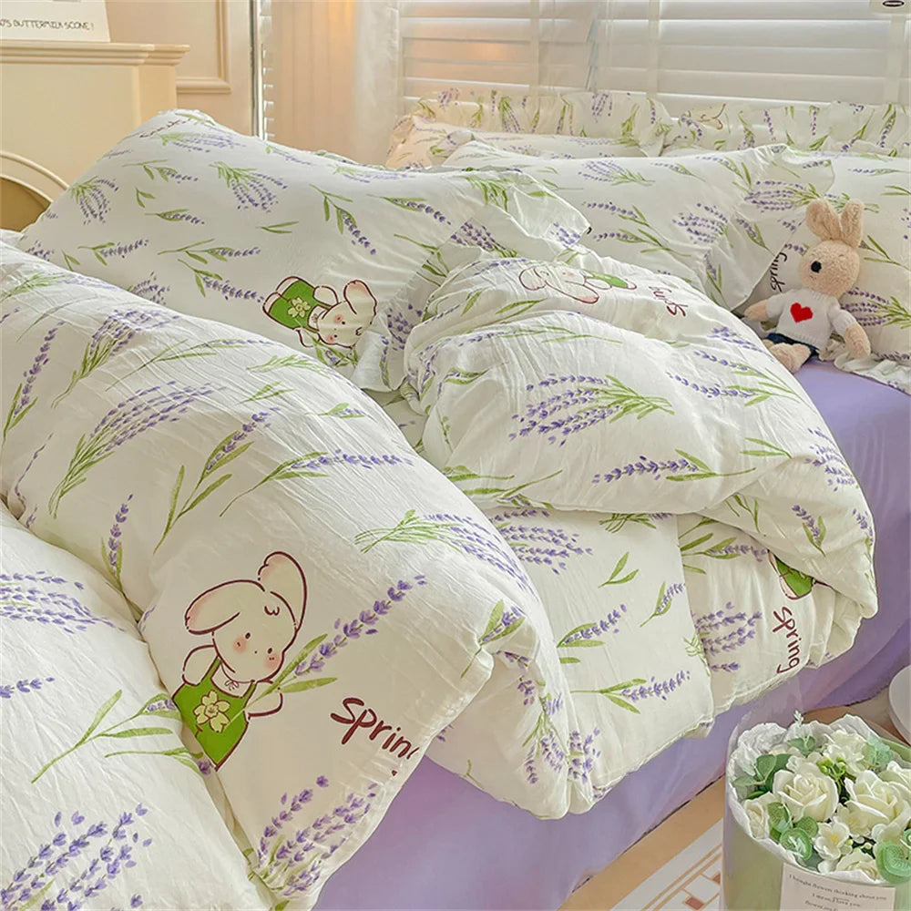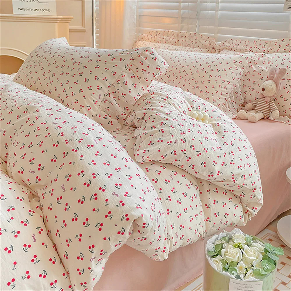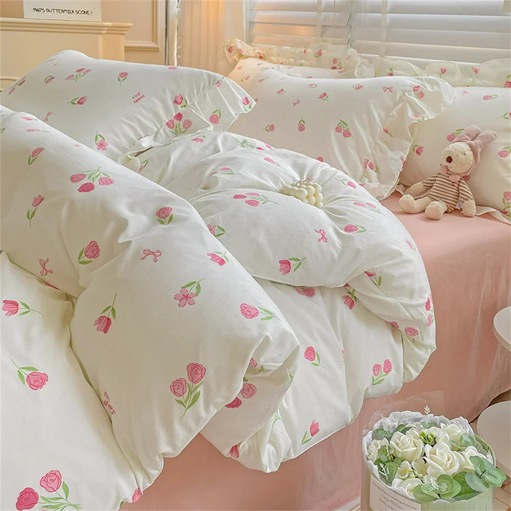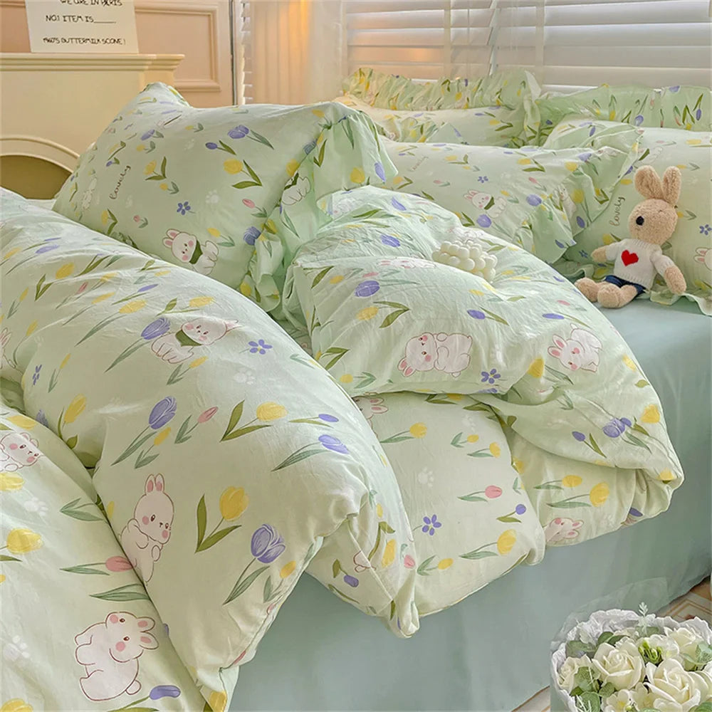 Fresh Plant Flower Bed Sheet for Children and Adults Four-Piece Bed Set Pillowcases Soft Washed Cotton Home Textiles