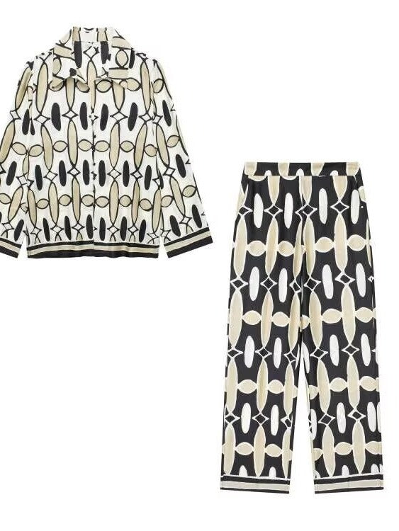 Stay stylish and comfortable with our Geometric Long Sleeve Shirt + Pants set. The bold geometric design adds a touch of modernity to your wardrobe. while the long sleeve and pant combination offers versatility and practicality.