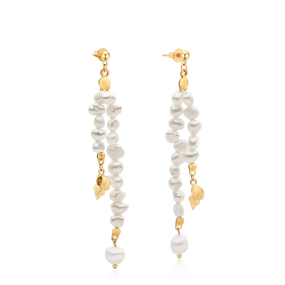 Enhance your outfit with these elegant Geometric Pearl Tassel Exaggerated Earrings. The geometric design and pearl details add a touch of sophistication. while the tassels provide a unique and eye-catching element.
