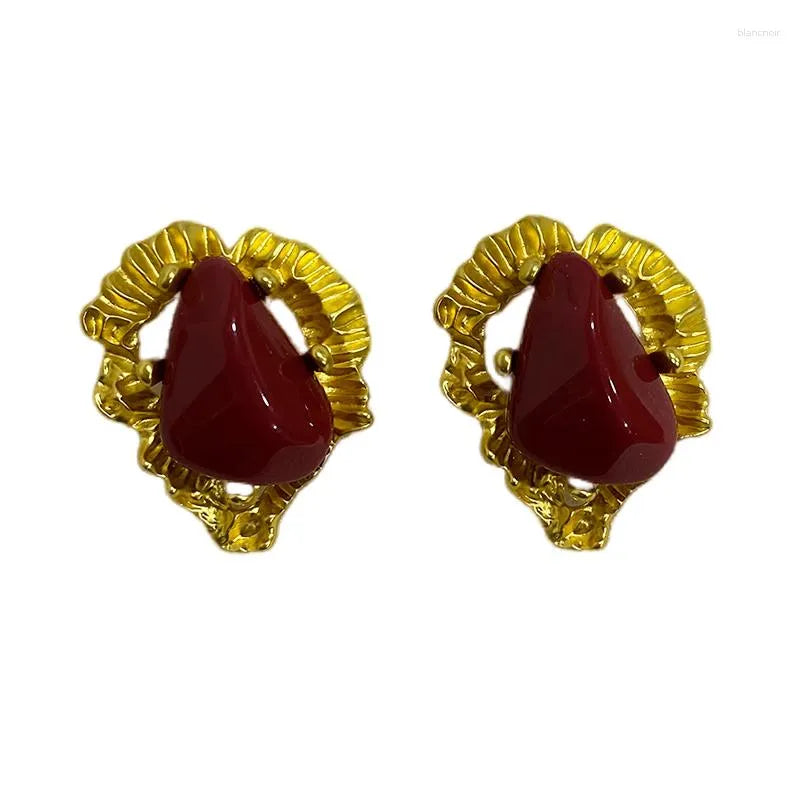 Crafted with gold color metal. these earrings feature a unique. irregular stone design that adds a touch of retro flair. Perfect for any occasion. these earrings will elevate your style to new heights.