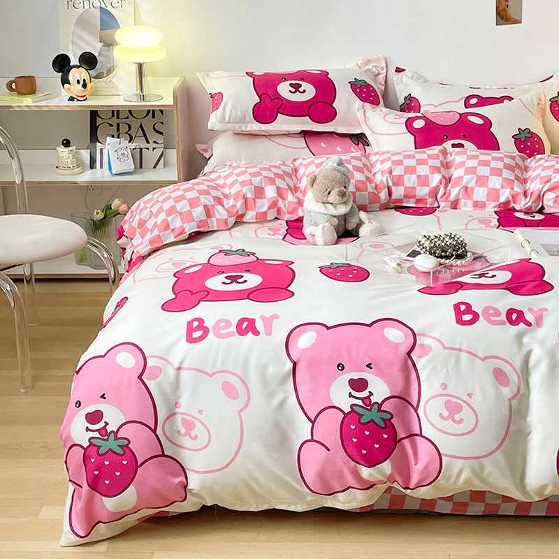 Girls Bedding Sets Kawaii Seersucker Bed Sheet Pillowcase Solid Color Duvet Cover Cute Home Decoration