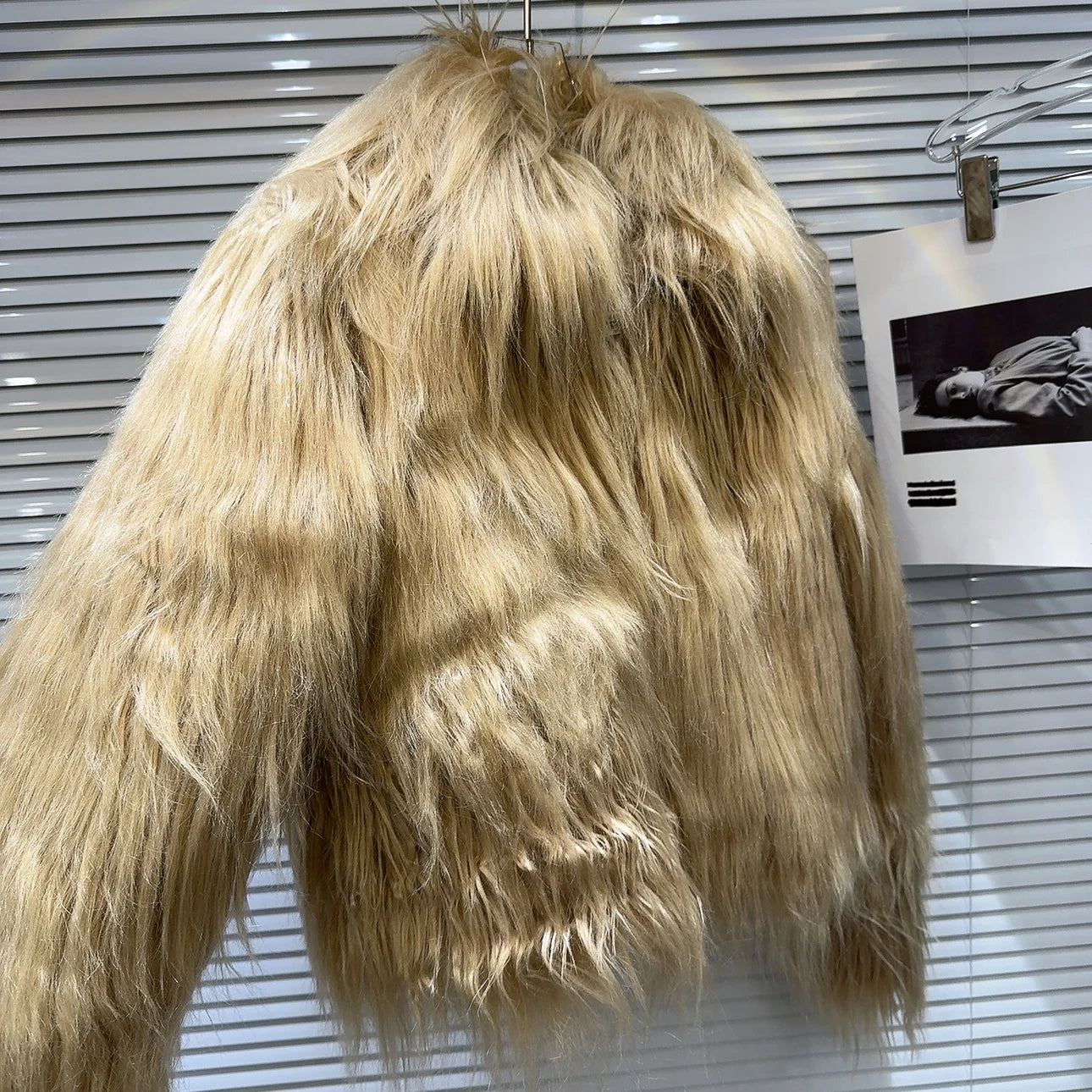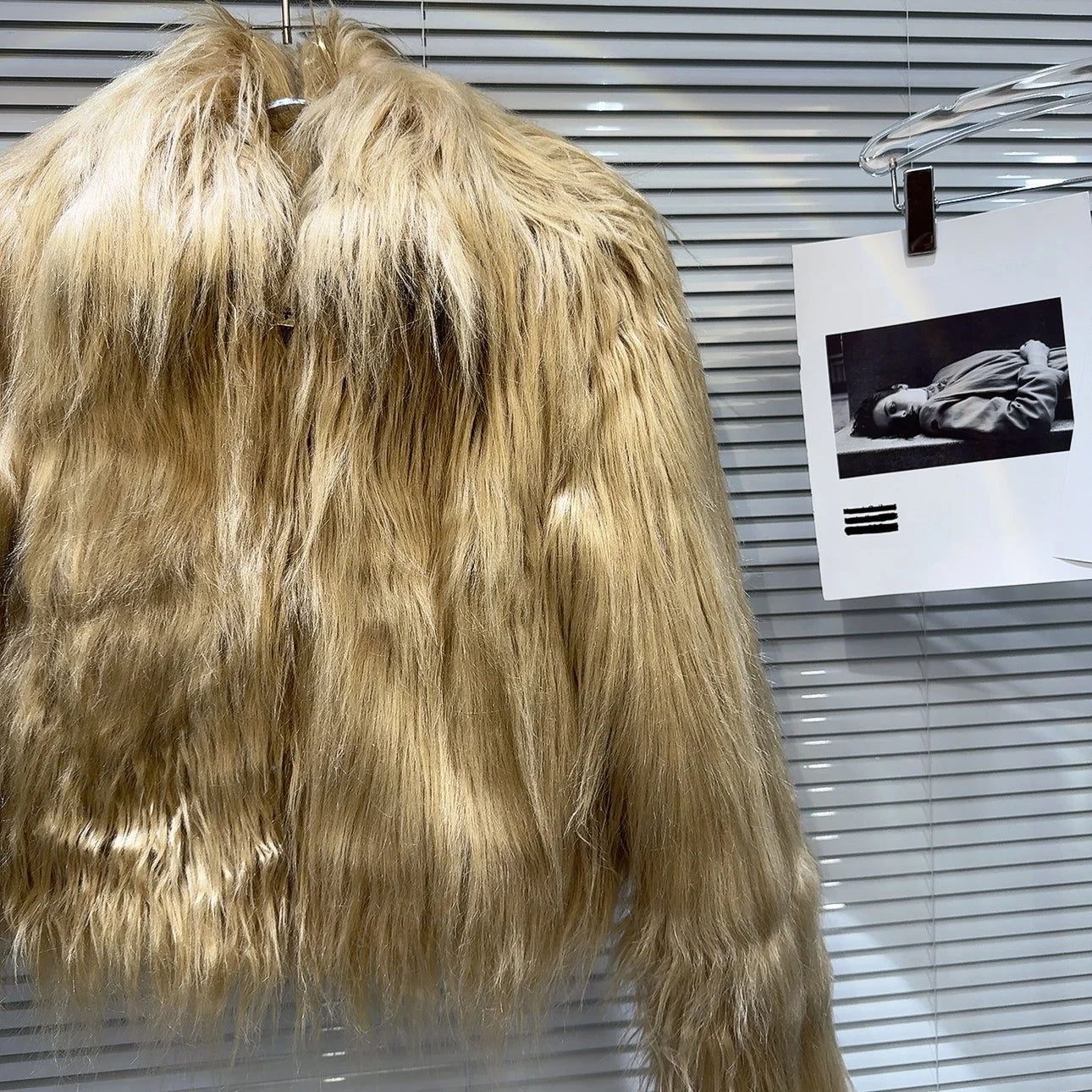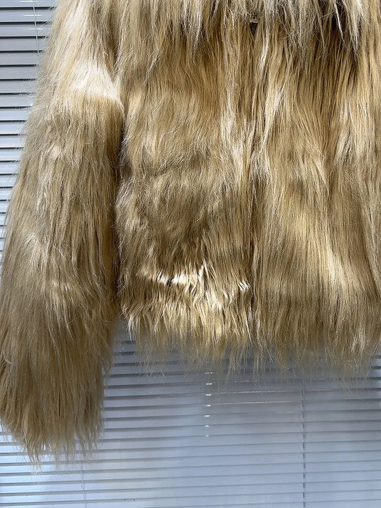 Stay warm and stylish this winter with our Gold Faux Fur Plush O-Neck Zipper Jacket. Made with trendy faux fur and fluffy cotton. this jacket boasts long sleeves and a stylish O-neck design.