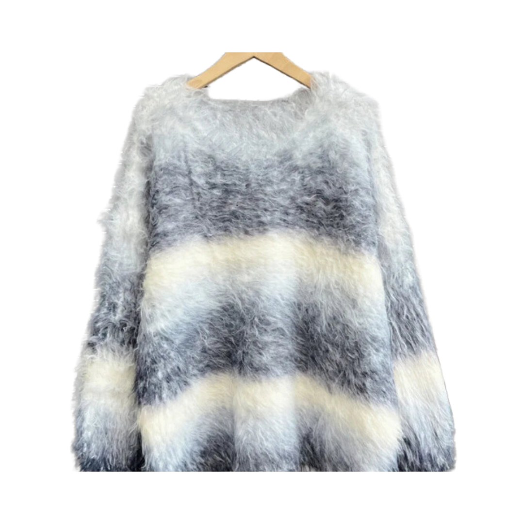 Made with soft and luxurious mink cashmere. this sweater features a rainbow striped design that adds a pop of color to your wardrobe. With long sleeves and a loose fit. it's perfect for layering and keeping you cozy all day long.