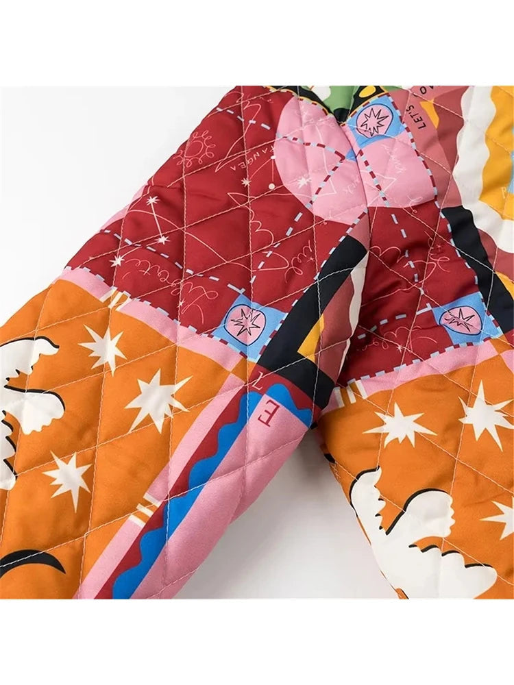 Stay warm and stylish with our Graffiti Print Quilted Jacket. Made for comfort and durability. this jacket features a unique graffiti print that adds a touch of urban edge to any outfit. Quilted for extra warmth. this jacket also boasts a trendy design that is perfect for any fashion-forward individual.