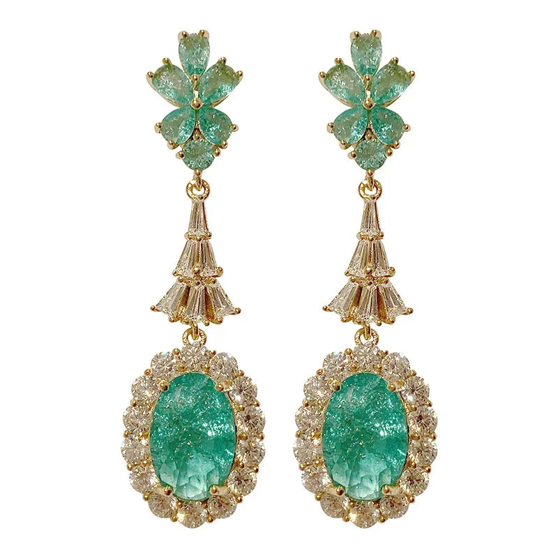 Expertly crafted with green cubic zirconia stones. these earrings add a pop of color to any outfit. The broken design adds a unique touch. making them a conversation starter.