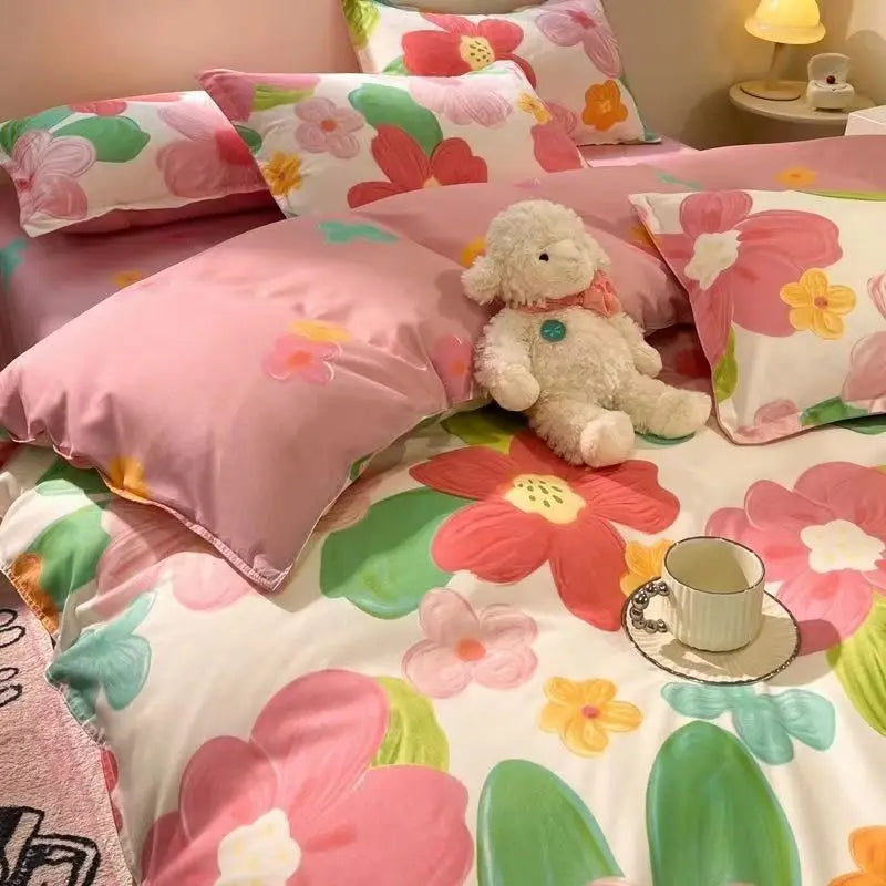 Green Floral Duvet Cover Set No Filler Pillowcase Flat Sheet Fashion Single Queen Size Girls Blanket Decoration Bedding Set