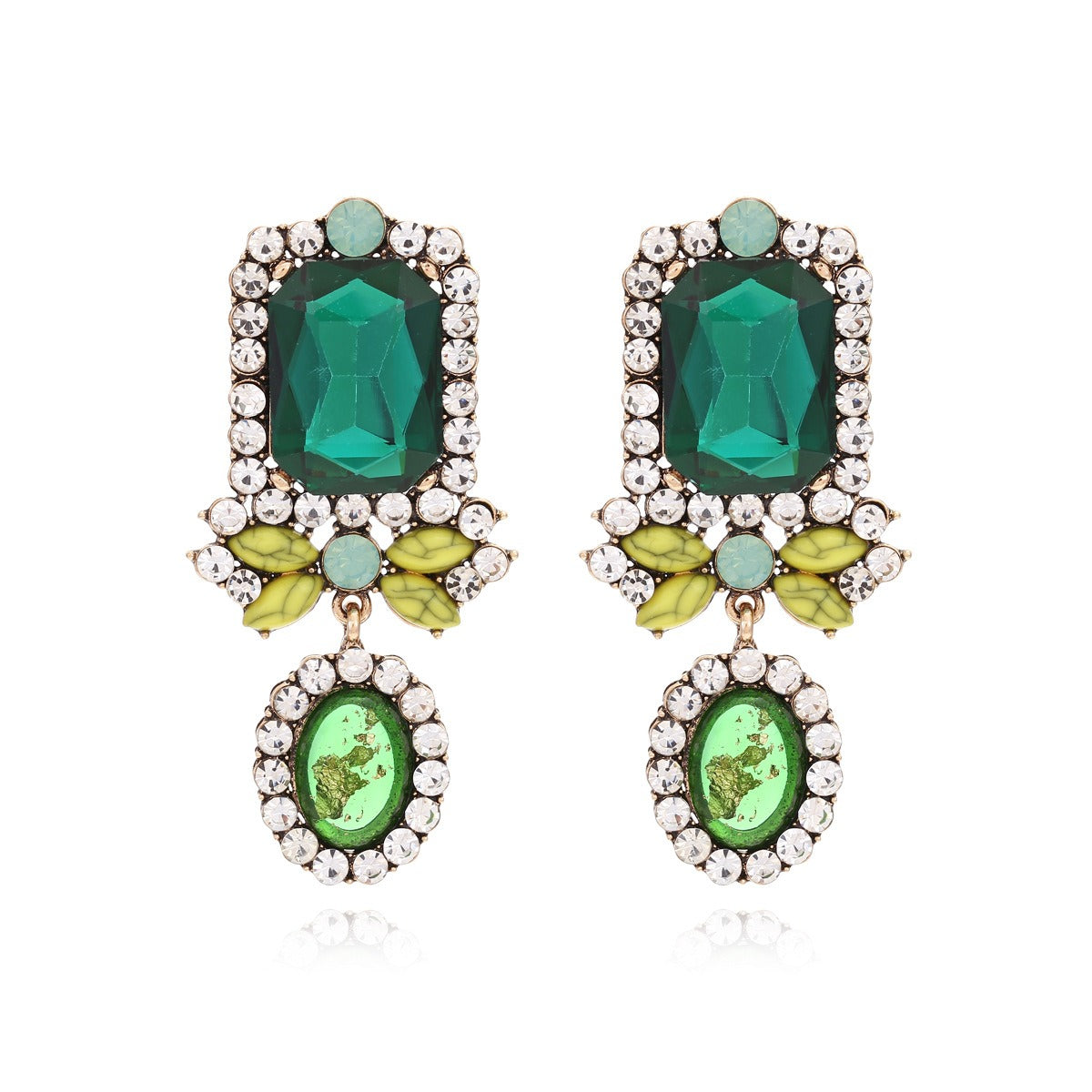 These stunning earrings feature a unique geometric design and are adorned with dazzling green diamonds. making them a perfect accessory for any occasion. Crafted with exquisite detail. these earrings will elevate any outfit and add a touch of luxury to your wardrobe.