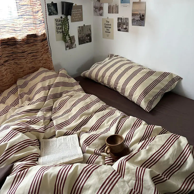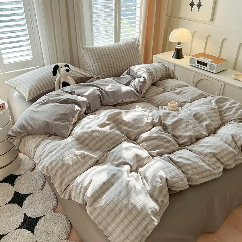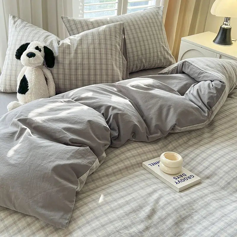 Grey Plaid Bedding Set Ins Style Nordic Duvet Cover Flat Sheet Pillowcases No Filler Full Queen Size Girls Boys Home BedSpread