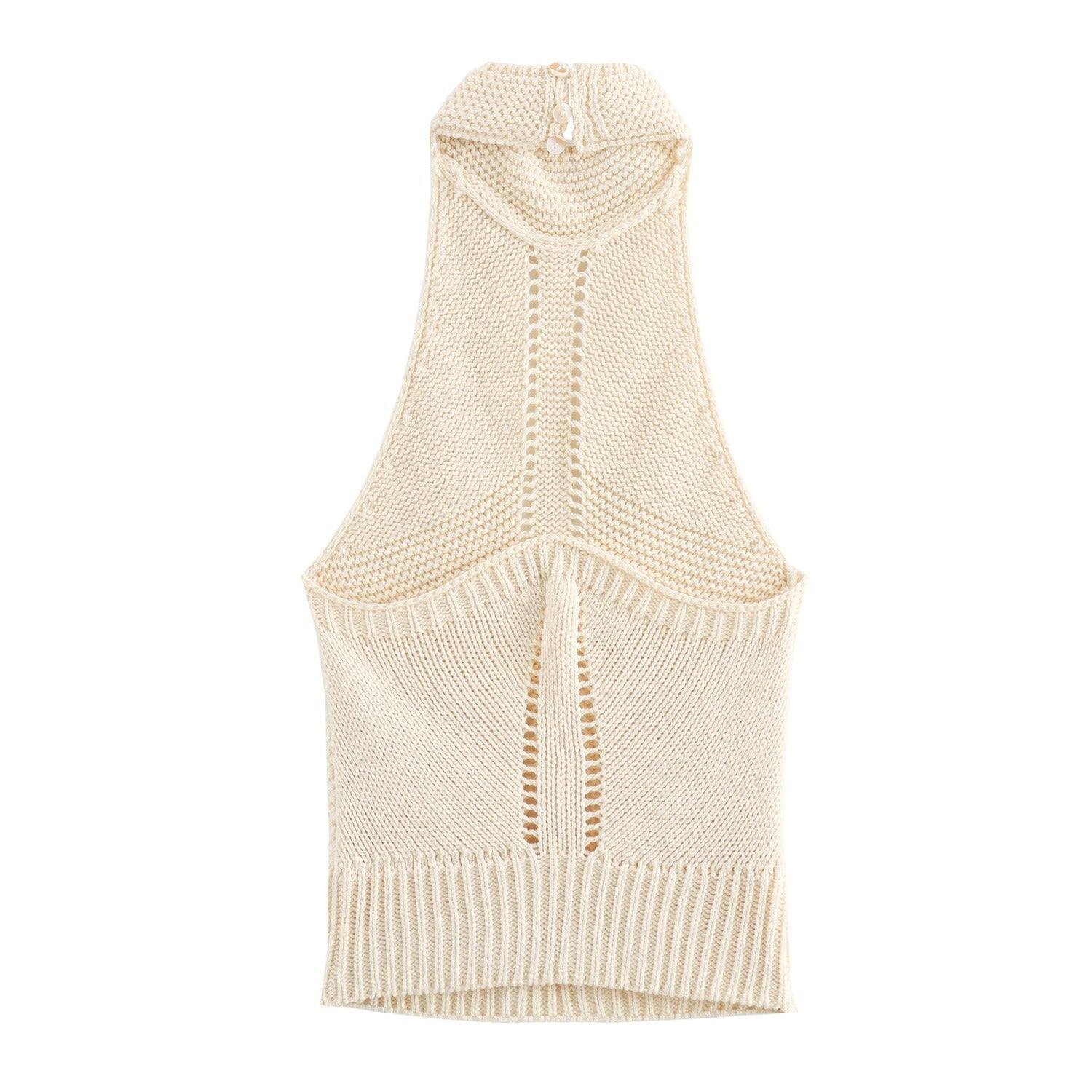 This Halter Neck Slim Fit Knitted Vest is designed to enhance your figure with its flattering slim fit. The halter neck provides added support and a stylish touch.