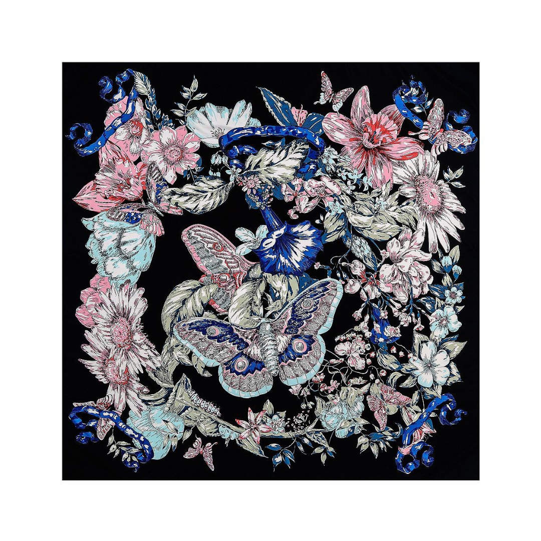 This butterfly flower square scarf has been expertly hand painted. making each piece unique. The intricate details of the butterfly and flower design add a touch of elegance to any outfit.