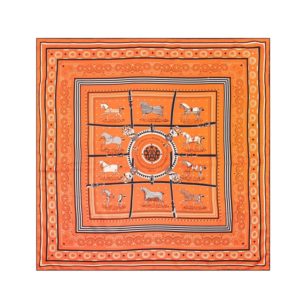 This scarf is a unique and fashionable accessory for any outfit. Made with care and attention to detail. this scarf features an eye-catching warhorse print that is sure to make a statement.