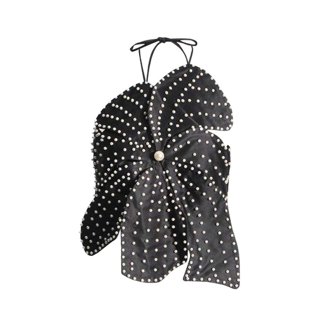 This unique design features handcrafted faux pearl flowers for a touch of elegance. With a backless design and halter neck. this top is perfect for a night out or special occasion.