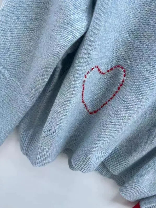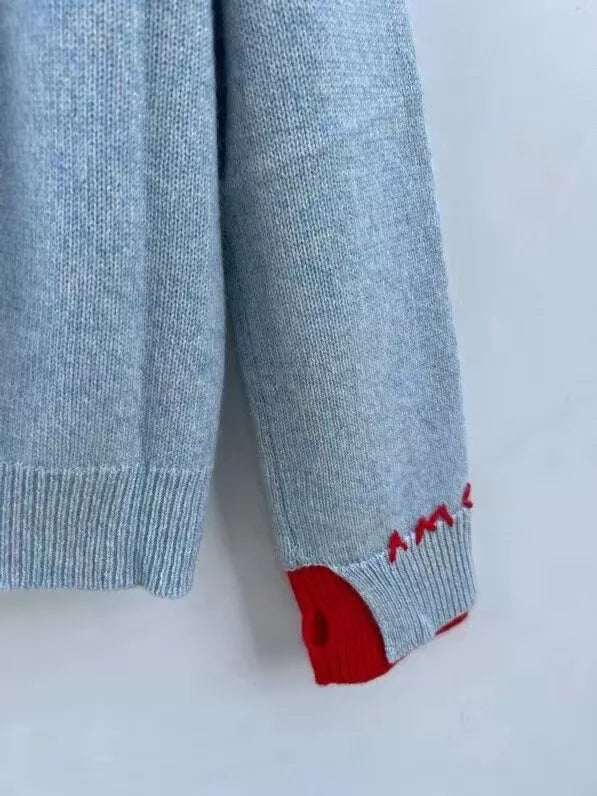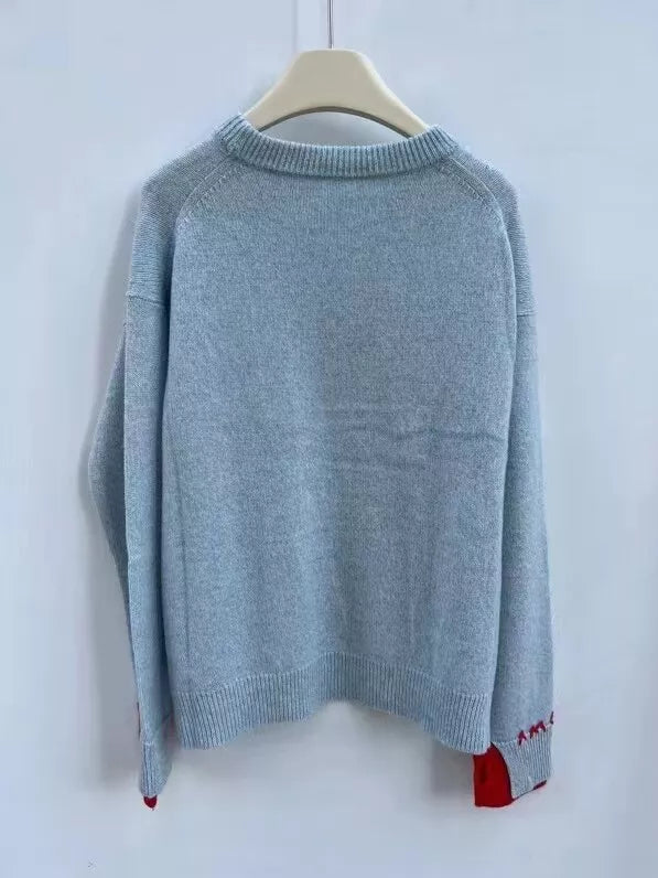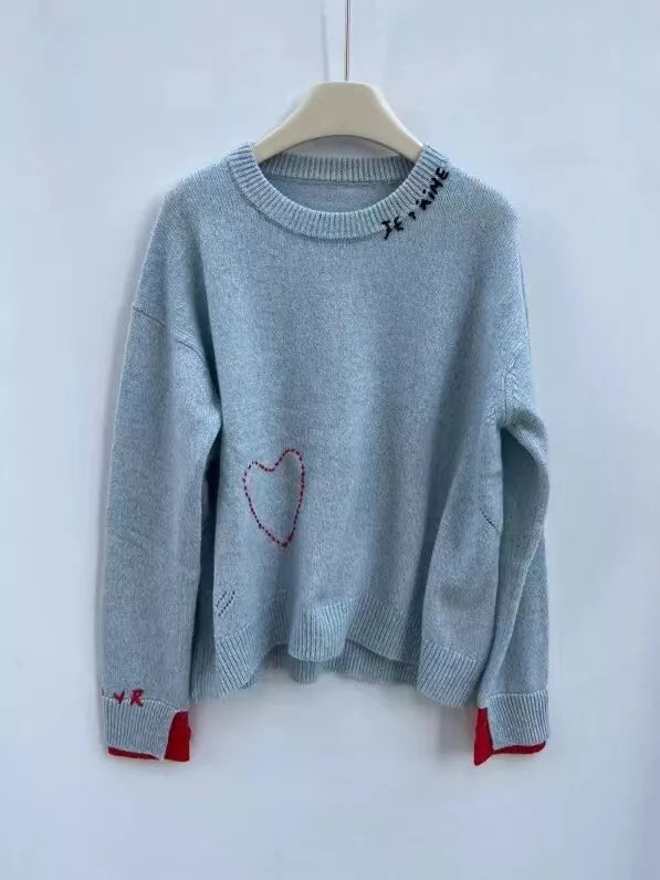 Each one is carefully crafted by hand and features meticulously embroidered letters. adding a personalized touch to your outfit. With its cozy knitted material. this sweater provides both style and comfort in one.