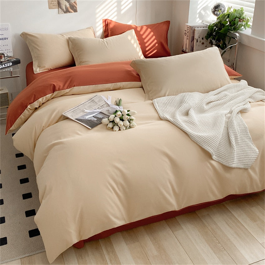 heart four-piece bedding student Pillowcases For Adult Kids Simple Pattern Bed Linen Home Textile Solid Color Flat Sheet Set