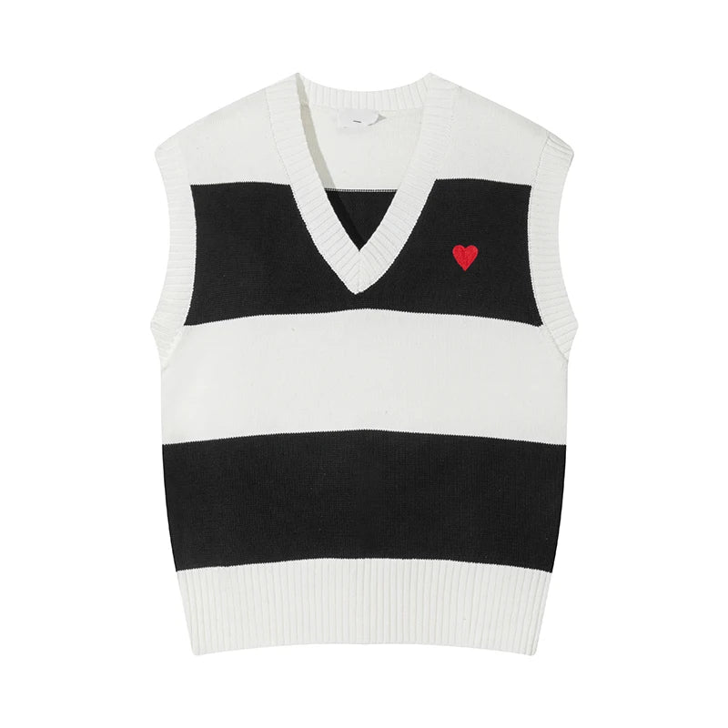 Stay warm and stylish with our Heart Knitted Stripe Vest. Crafted with a heart pattern and stripes. this vest adds a touch of love to any outfit. Made with high quality materials. it provides both comfort and durability. Perfect for any occasion. this vest is a must-have for your wardrobe.
