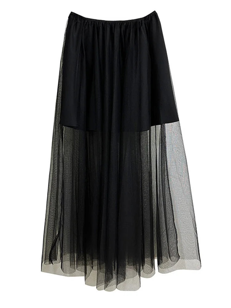 With its elastic waistband. it provides a perfect fit while the mesh fabric allows for breathability. The midi length and A-line shape give it a versatile and flattering look.