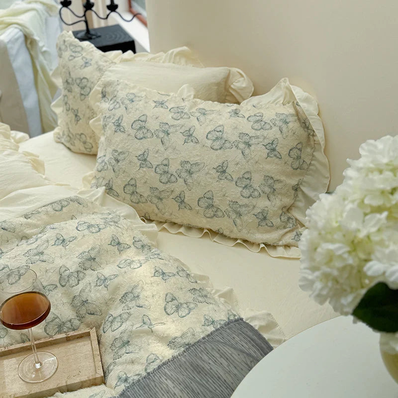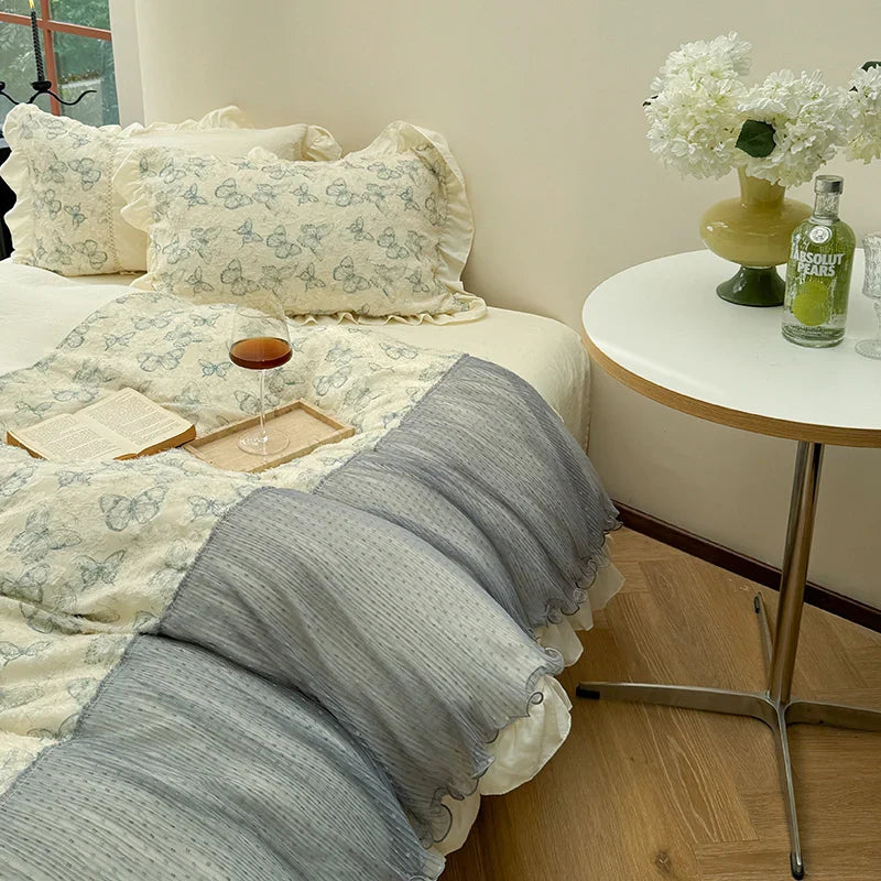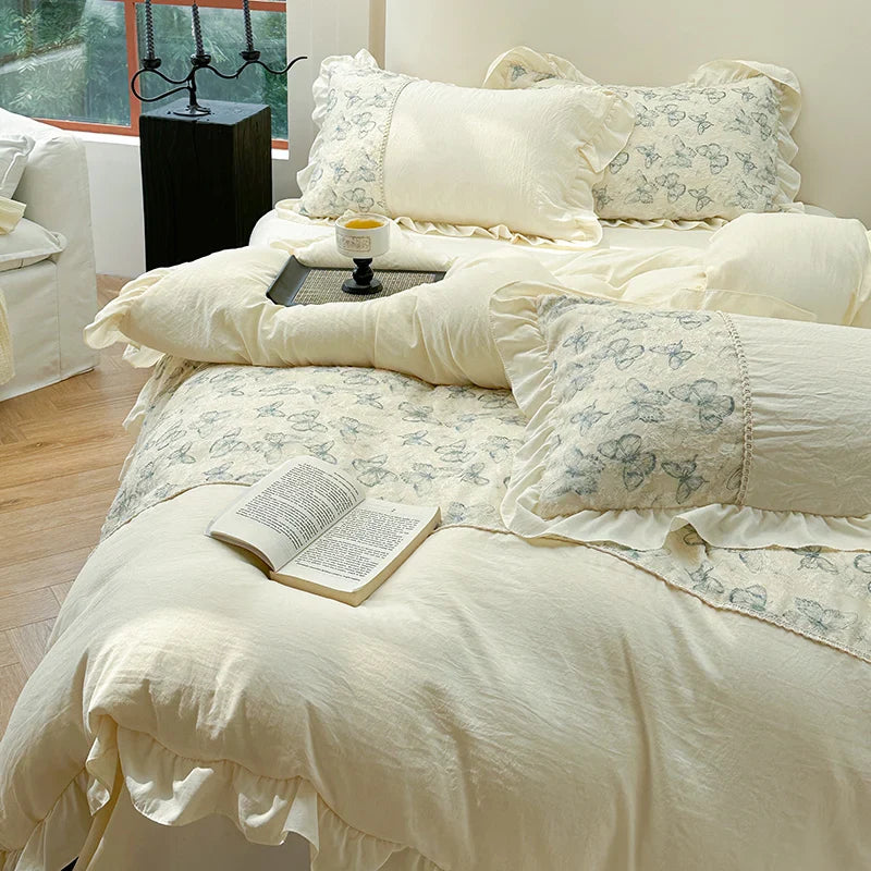 High Quality Bedding Set Type A Washed Cotton Butterfly Bed Sheets And Fitted Sheet Ancient Rhyme Butterfly Sound Duvet Cover