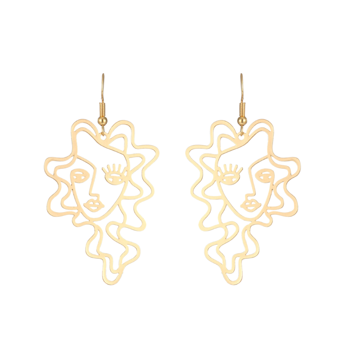 These stainless steel earrings feature an abstract design of a hollow portrait. adding a touch of beauty and fashion to any outfit. With a fine and delicate structure. these earrings are perfect for daily wear and will enhance the wearer's temperament.