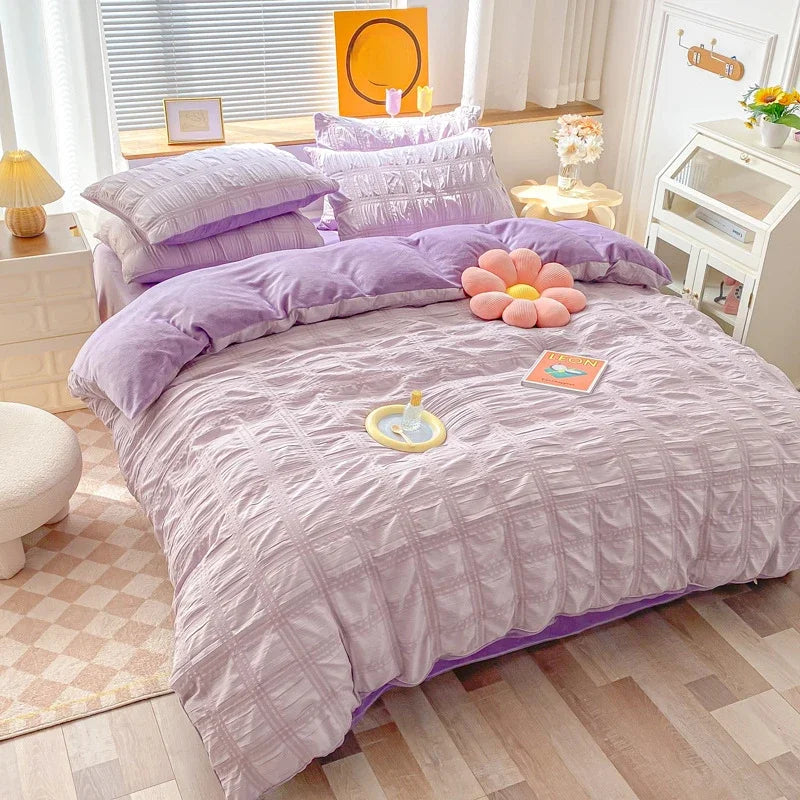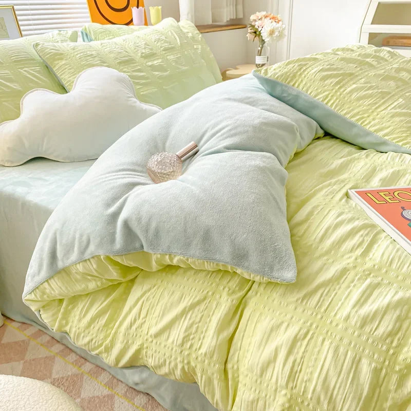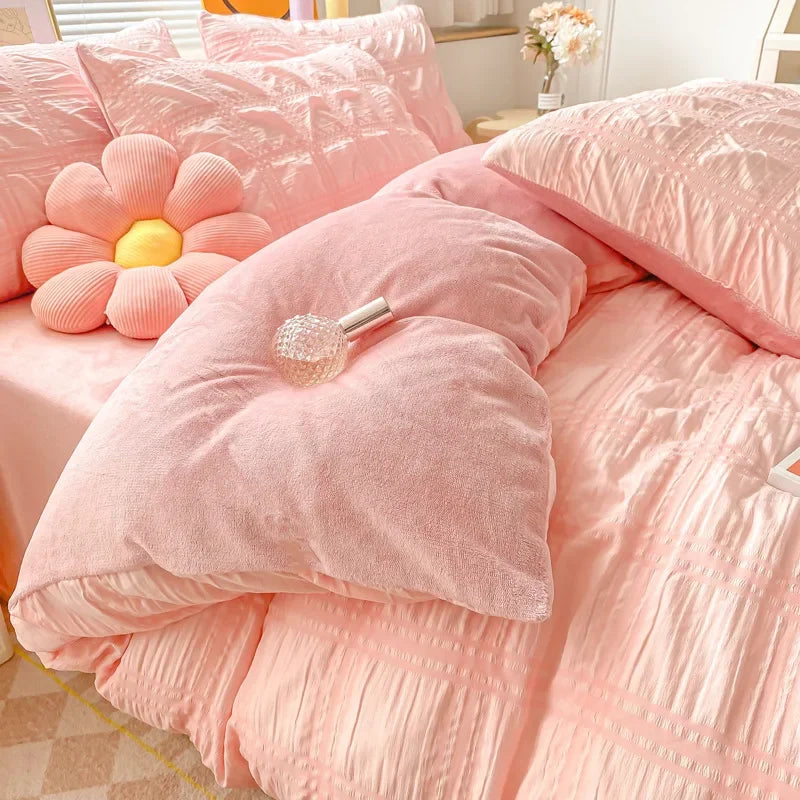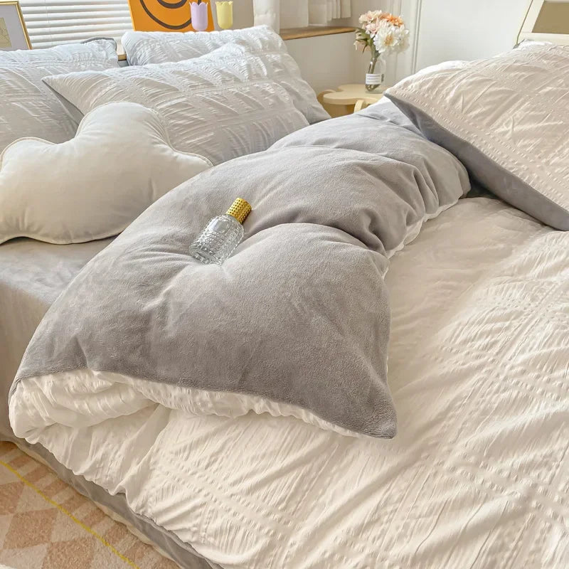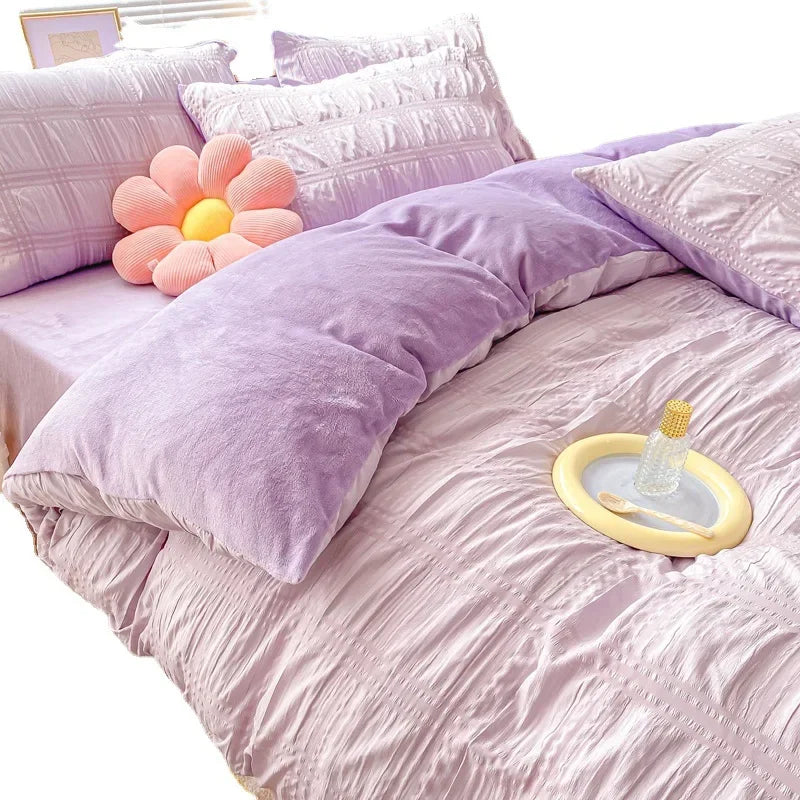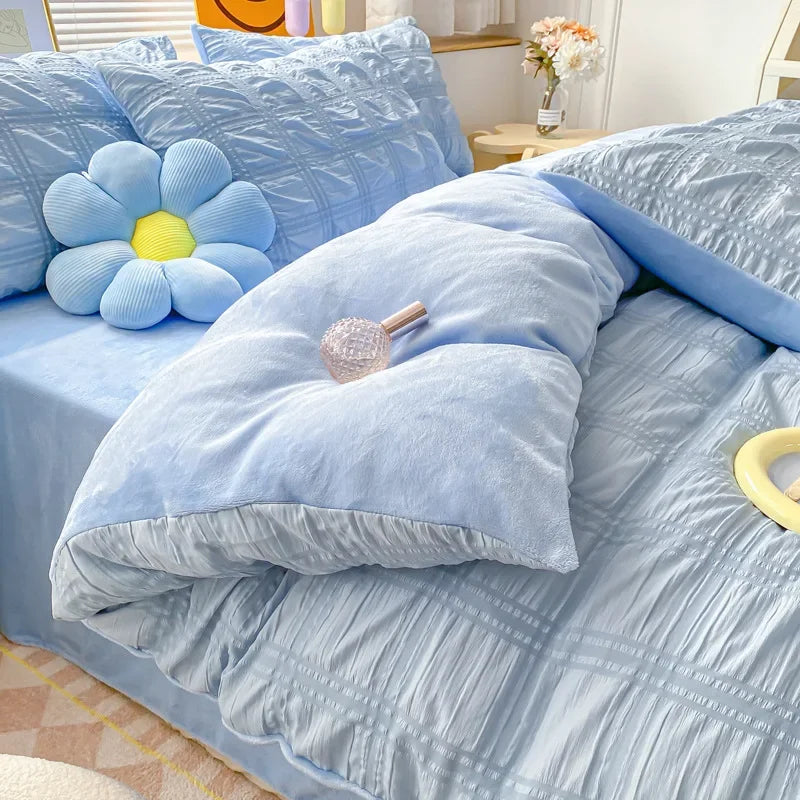 Home Textile Winter Coral Velvet Quilt Cover Four Piece Set Seersucker Duvet Cover Bed Sheet Pillowcase Comforter Bedding Set