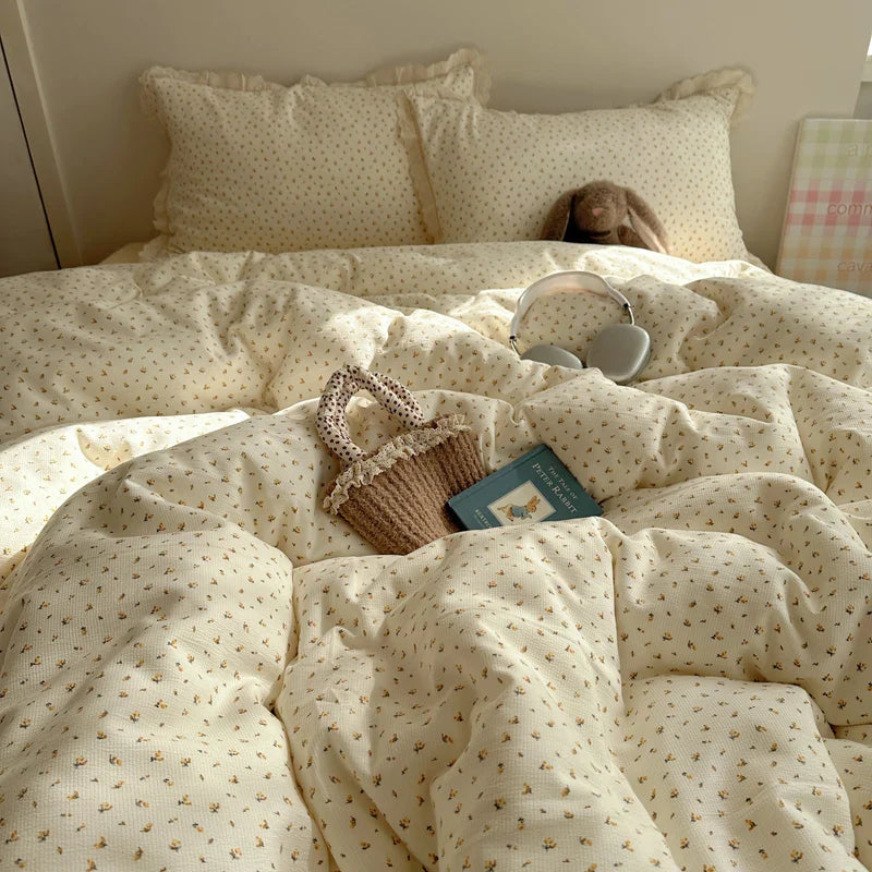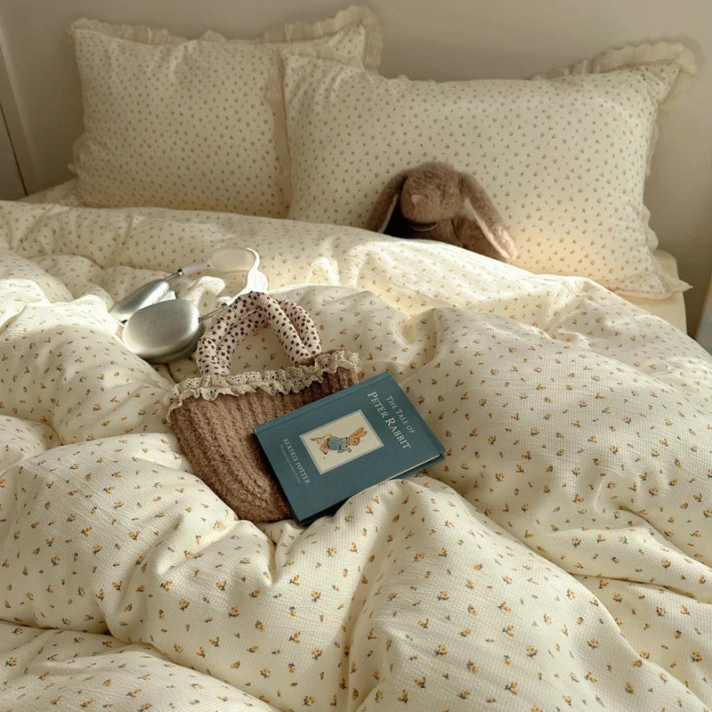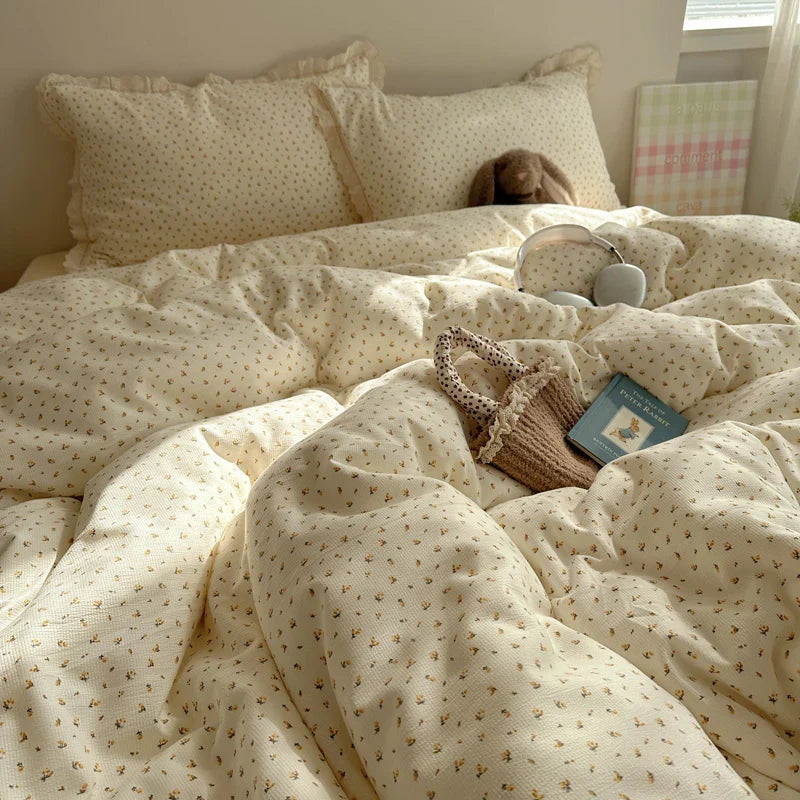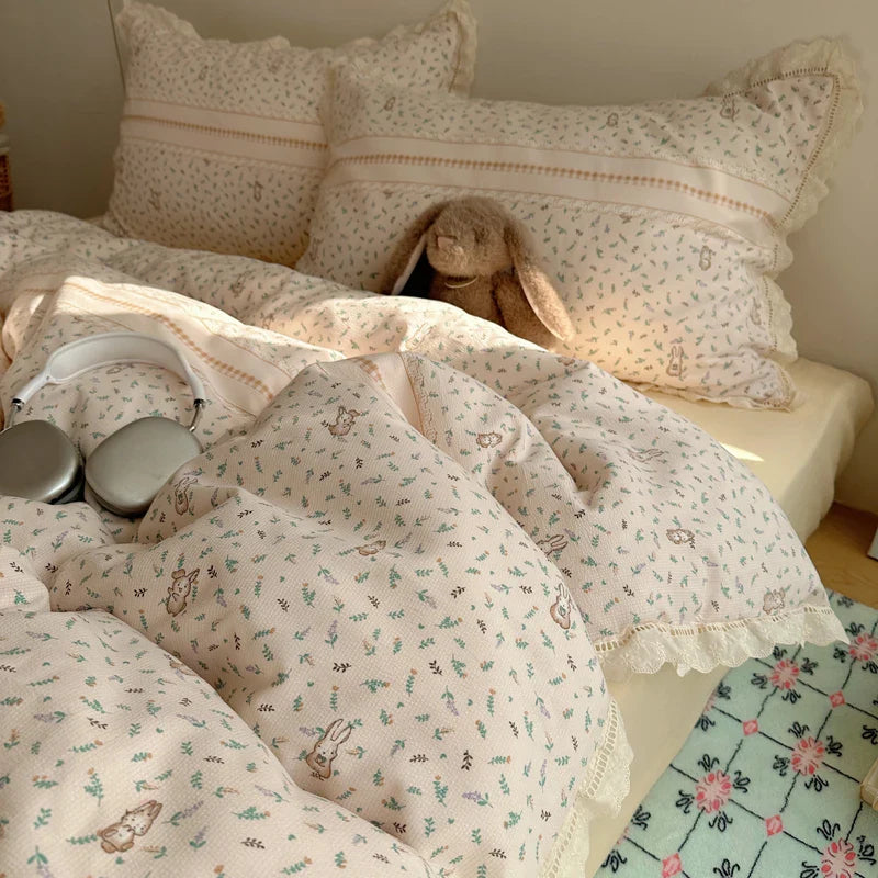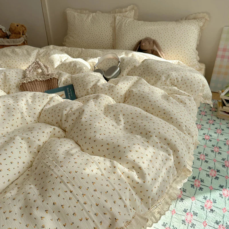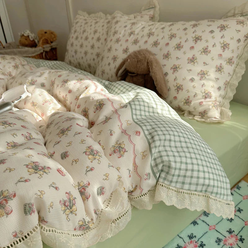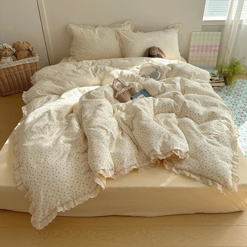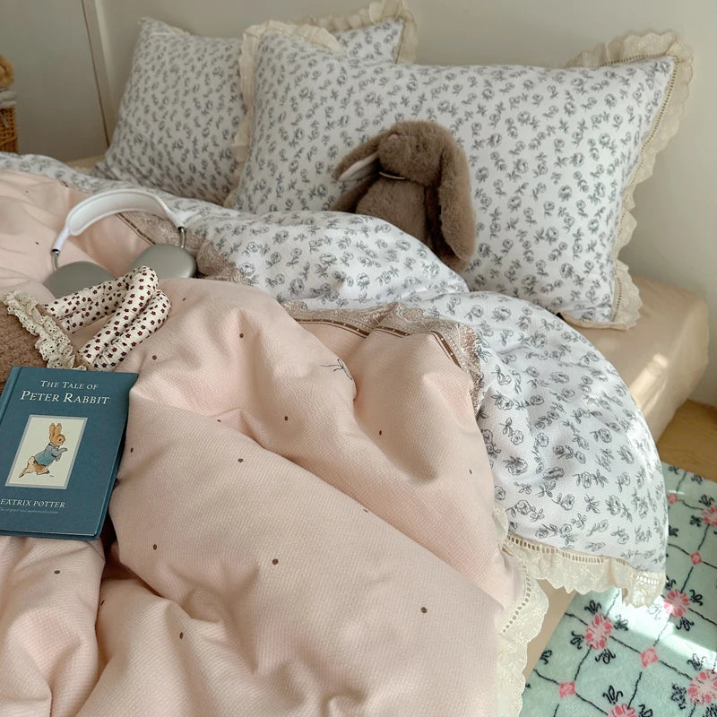 Ins Bedding Set Princess Floral Lace Simple 4pcs Bedding for Girls Woman Quilt Cover Sheet And Pillowcase Spring Home Textiles