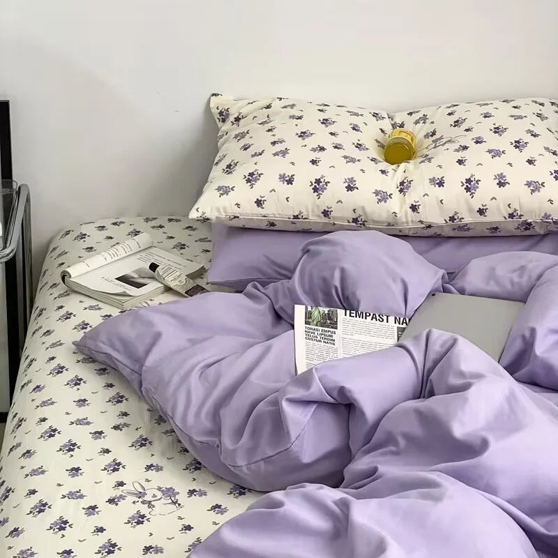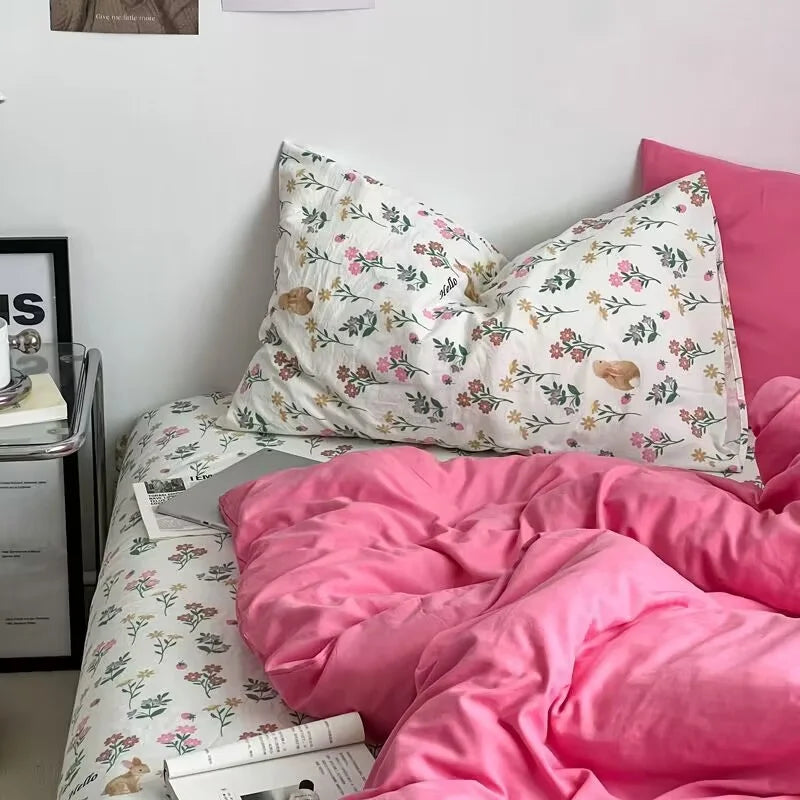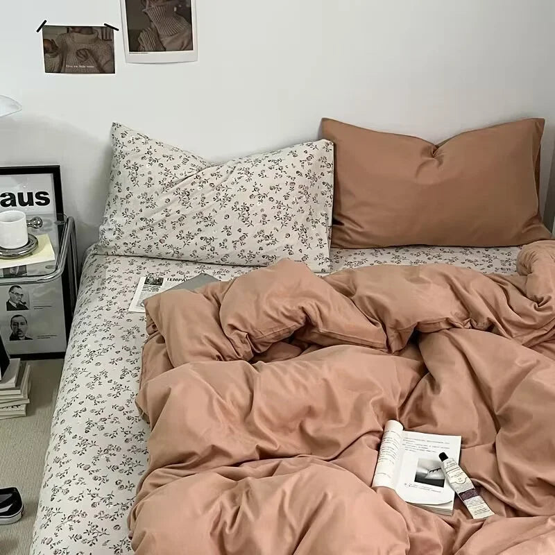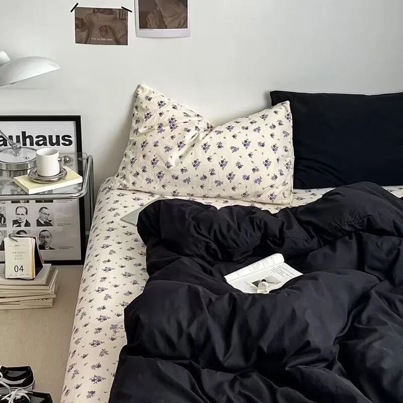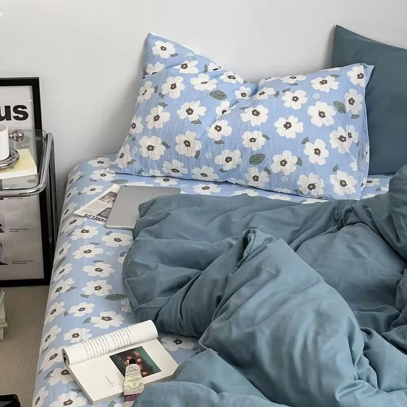 ins Nordic style floral bed sheet four-piece set quilt cover universal for four seasons single dormitory three-piece bedding