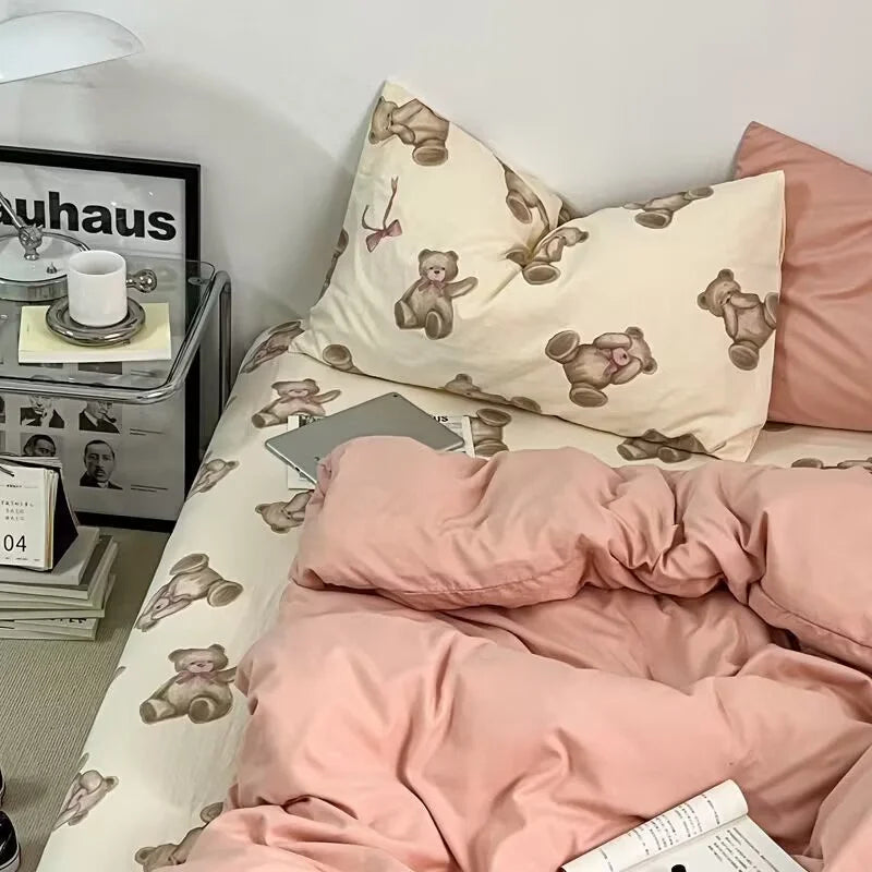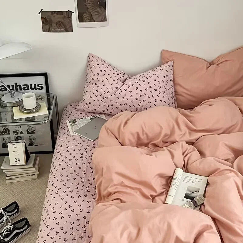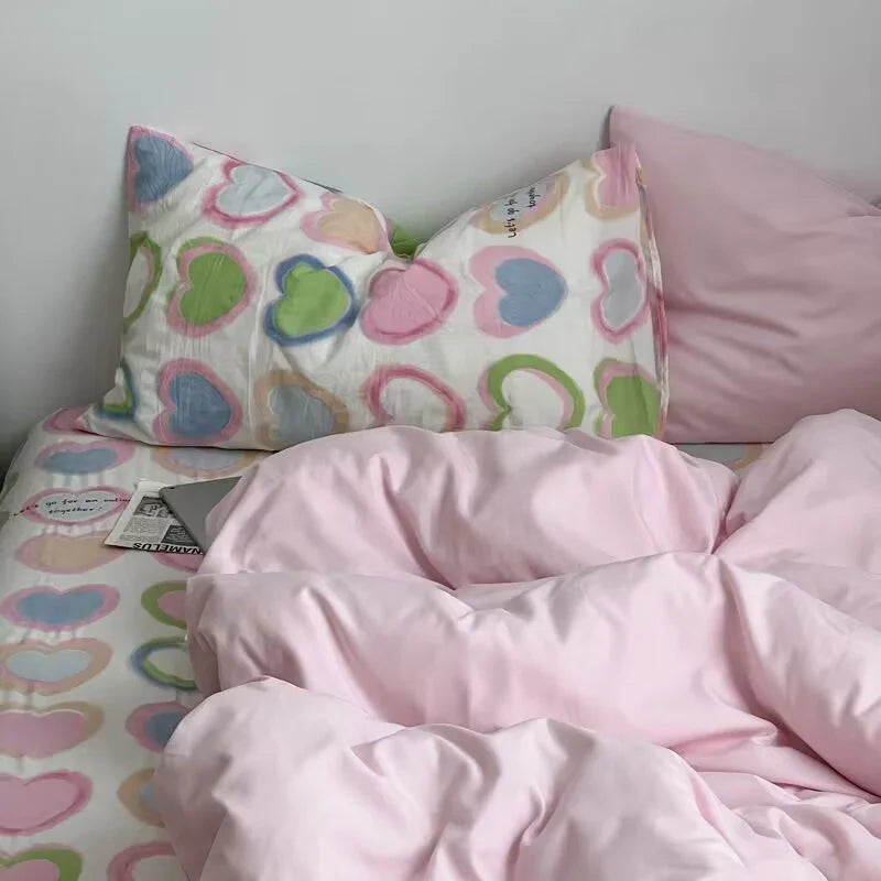 Ins Princess Pink Heart Duvet Cover Home Textile Pillow Case Bed Sheet Kids Girls Bedding Covers Set King Queen Twin Cute Kawaii