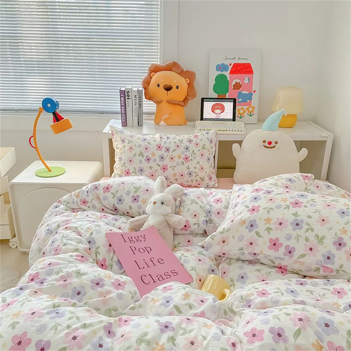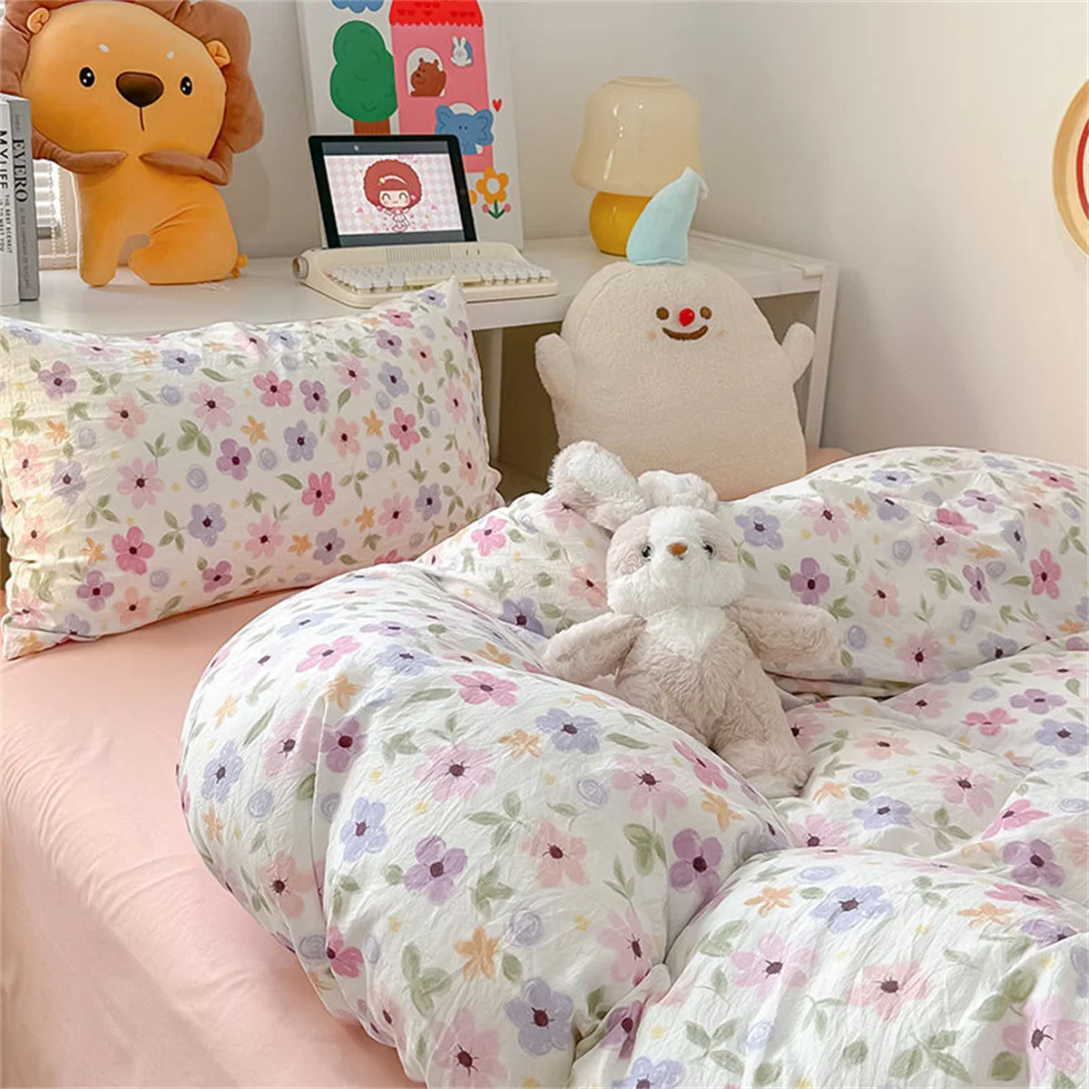 Ins Pink Bedding Set Bed Flat Sheet Pillowcase Twin Full Queen Princess Style Bed Linen Kids Girls Floral Duvet Cover