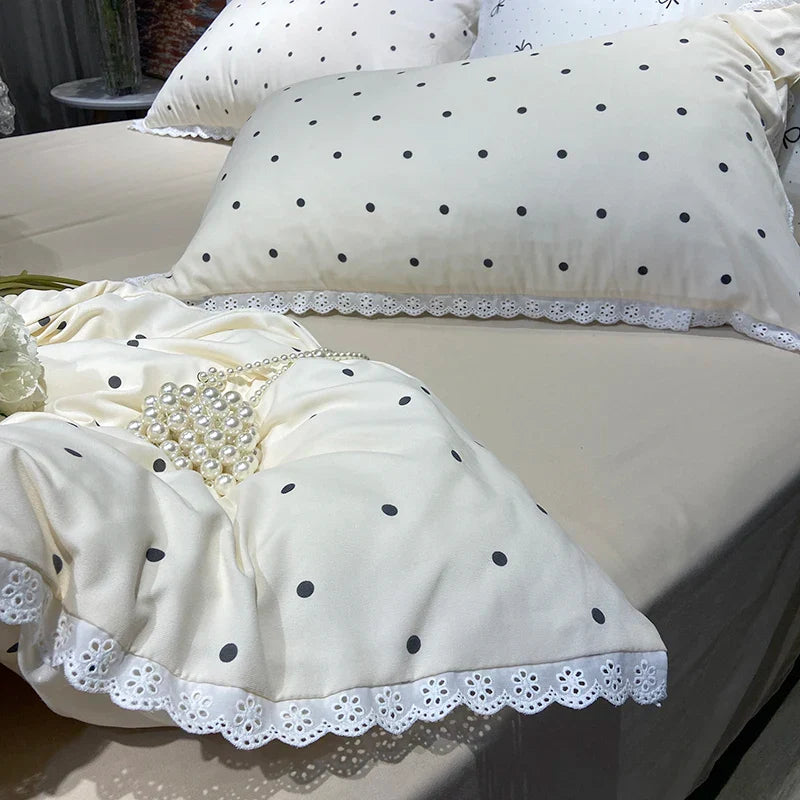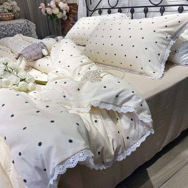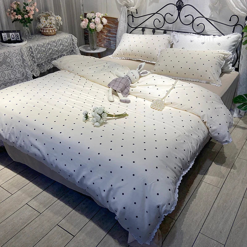 Ins Polka Dots Bedding Set Simple Print Duvet Cover Set With Pillowcases Flat Fitted Sheet Washed Cotton Skin Friendly For Adult