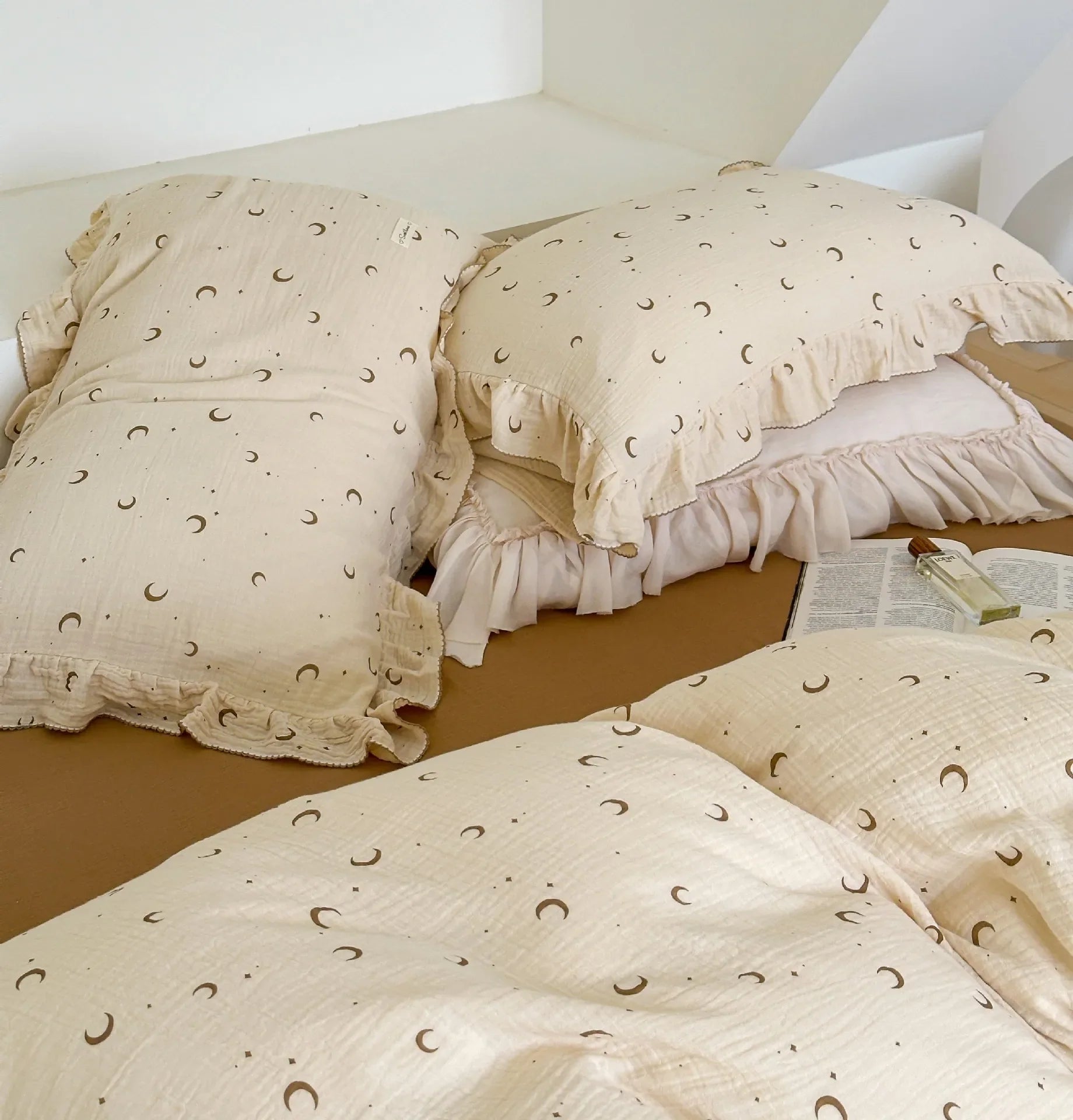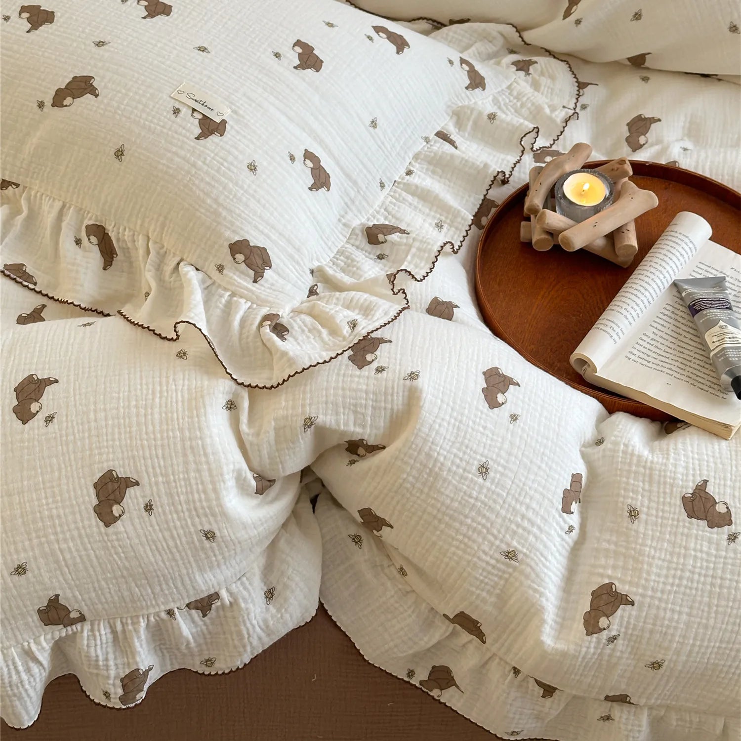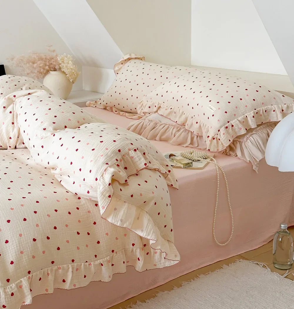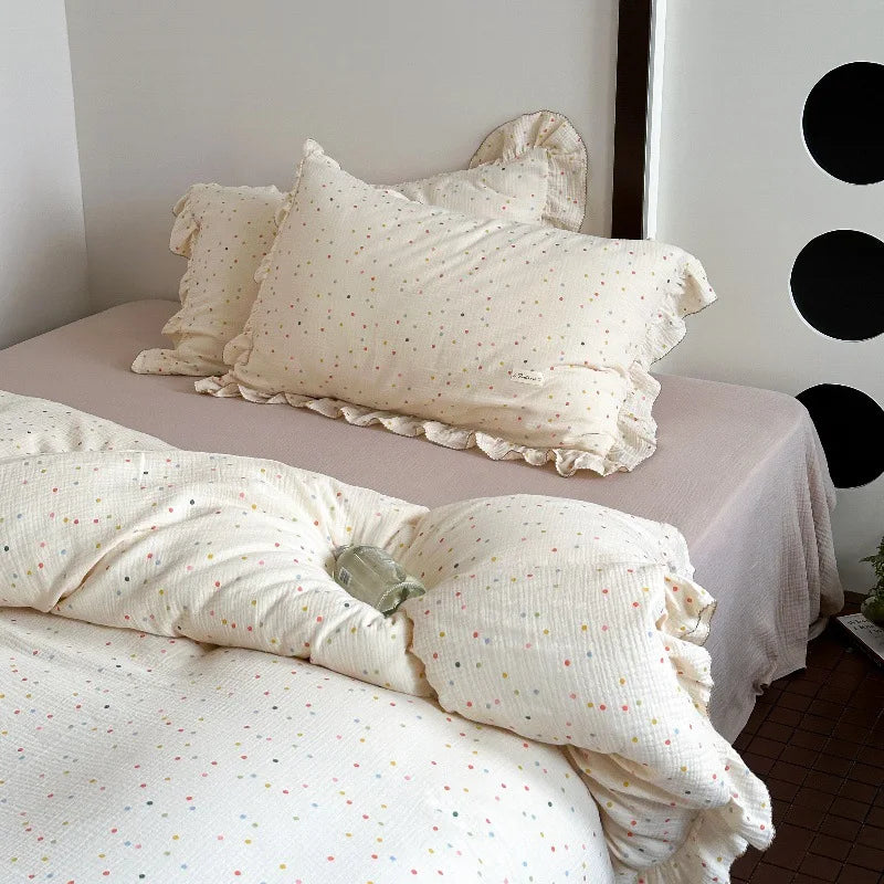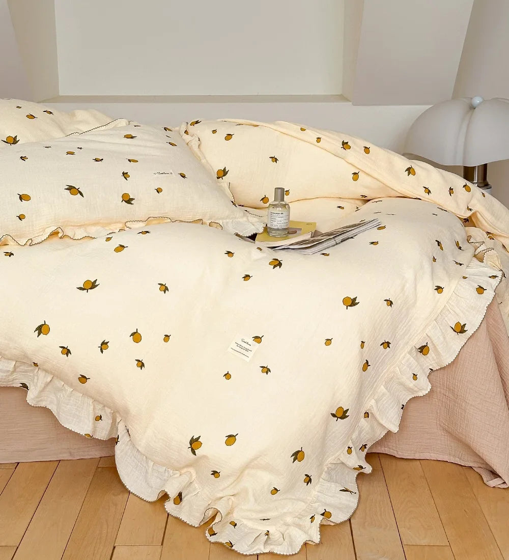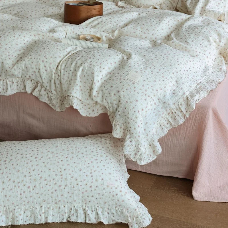 INS Princess Ruffle Edge Gauze 100% Cotton Pillow Case Breathable Duvet Cover Without Filler 3PCS Floral Home Bedding Set