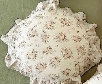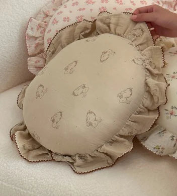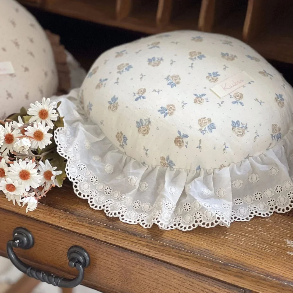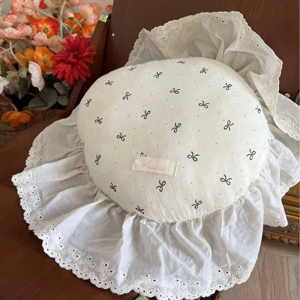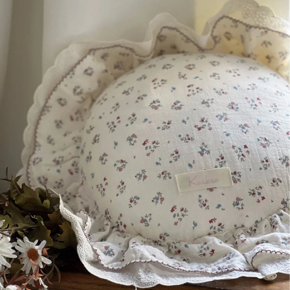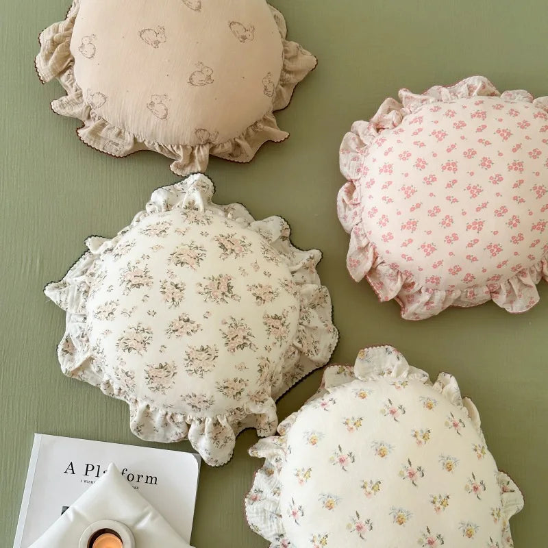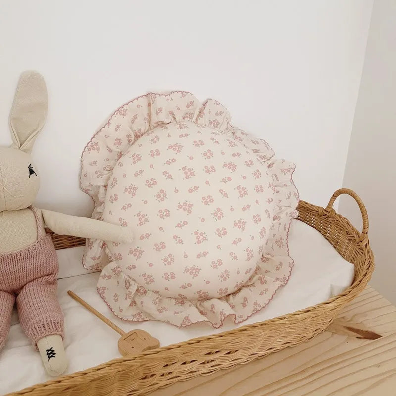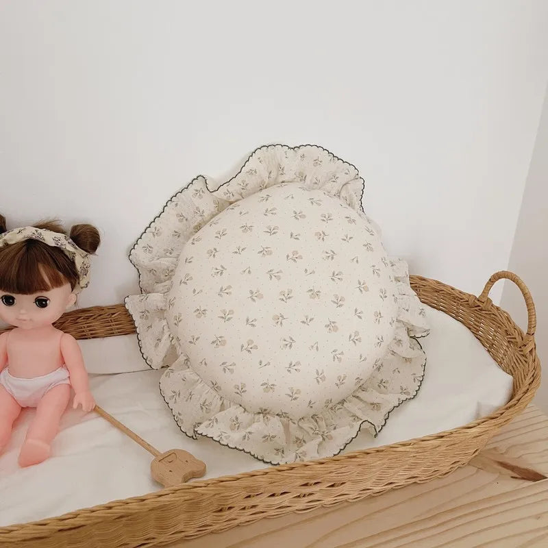 INS Round Ruffle Edge Floral Throw Pillow Stuffed Cushion Girl Heart Sweet Princess Cotton Home Bed Sofa Decor Cushion Headrest