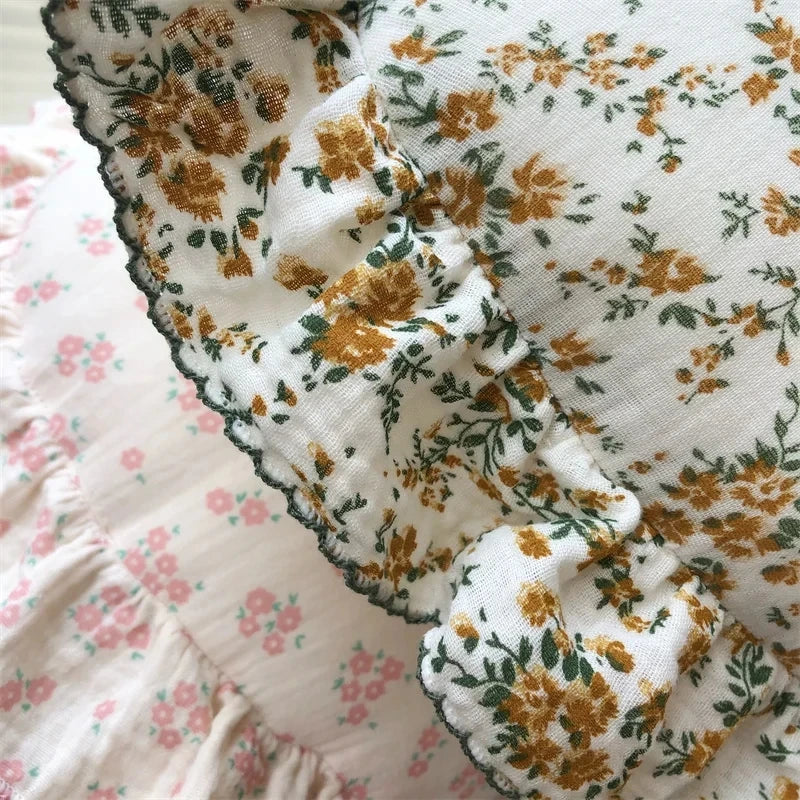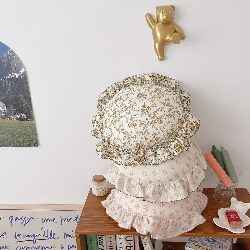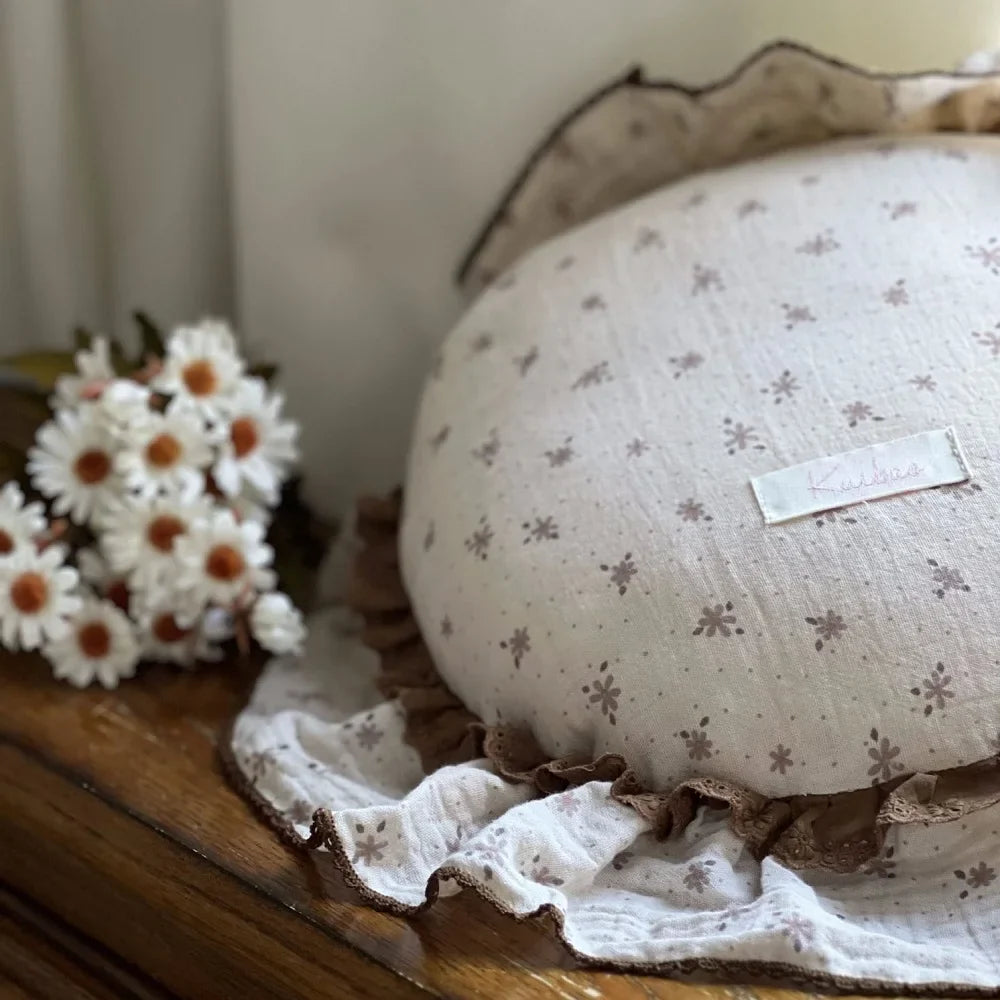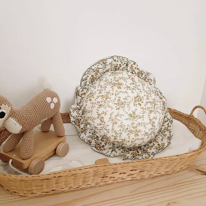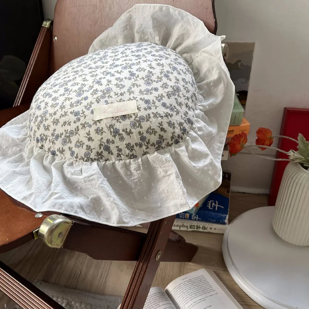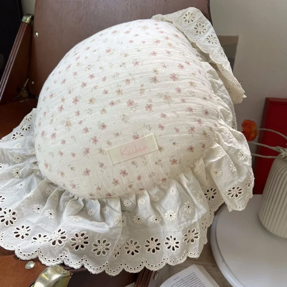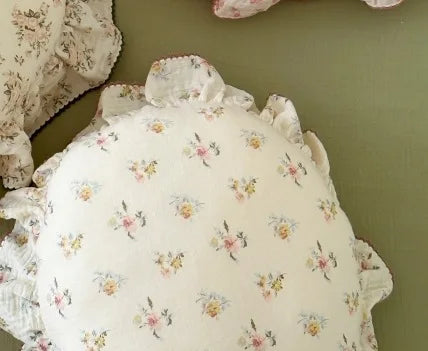INS Round Ruffle Edge Floral Throw Pillow Stuffed Cushion Girl Heart Sweet Princess Cotton Home Bed Sofa Decor Cushion Headrest