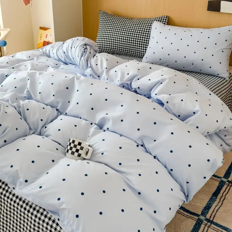 Ins Simple Blue Dot Bedding Sets 2025 New Girls Bed Sheet Set Four Piece With Pillowcases Dormitory Quilt Set No Filling