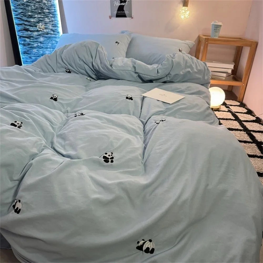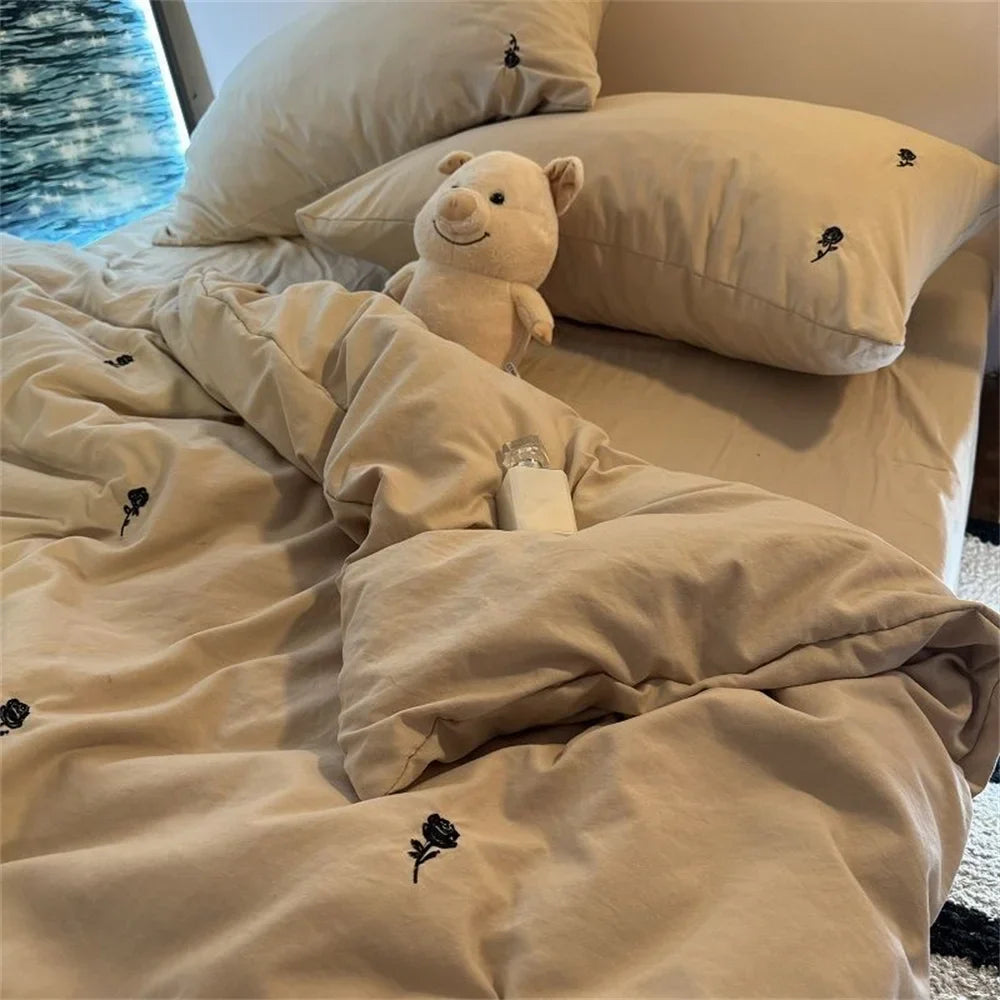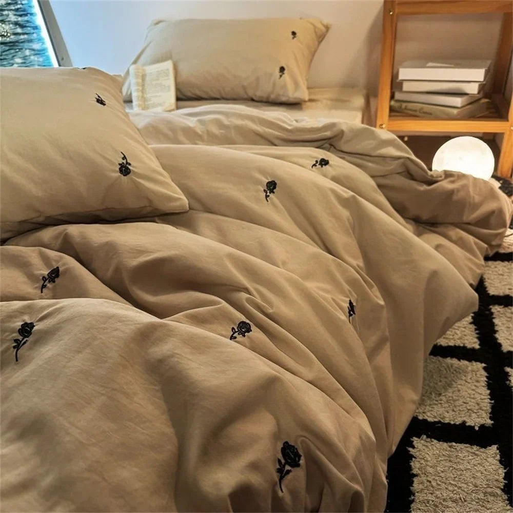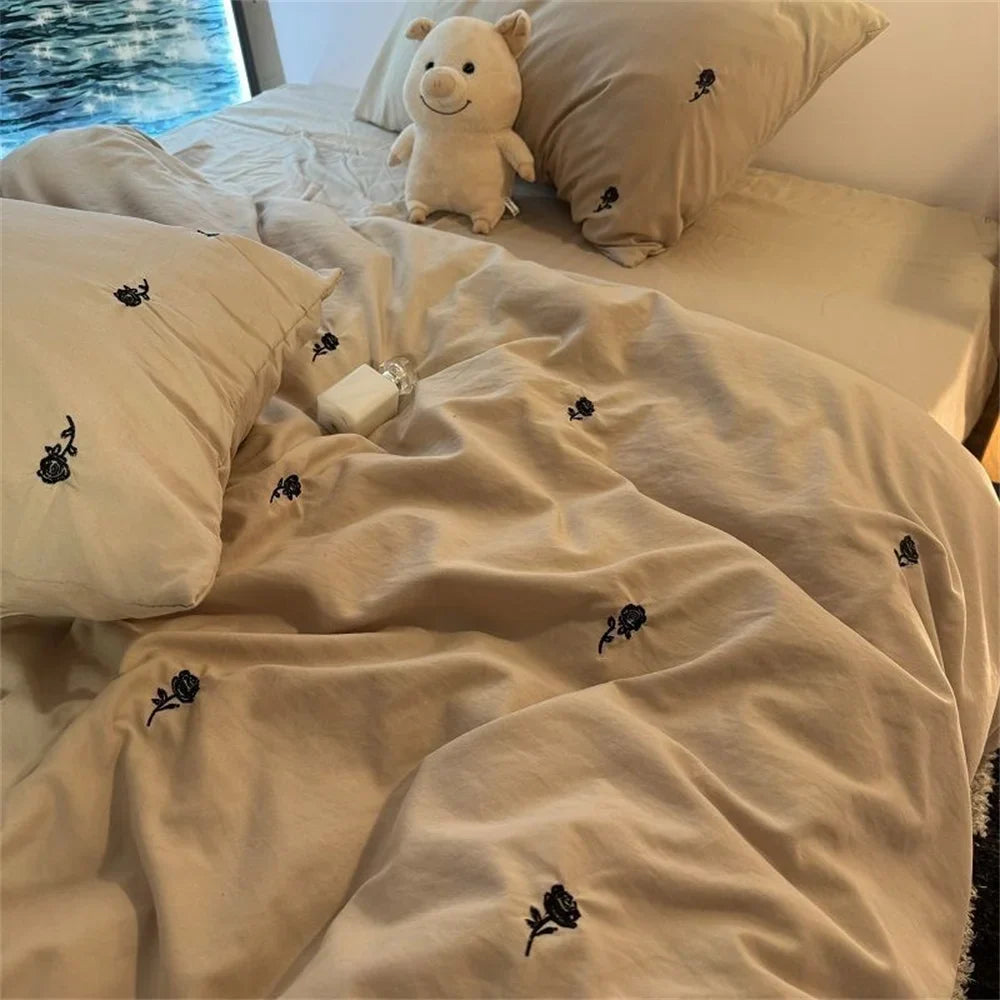 Ins Style Embroidered Flower Bedding Sheet Nordic Duvet Cover Set Home Luxury No Filling Bedding Set Comfortable Bedspread