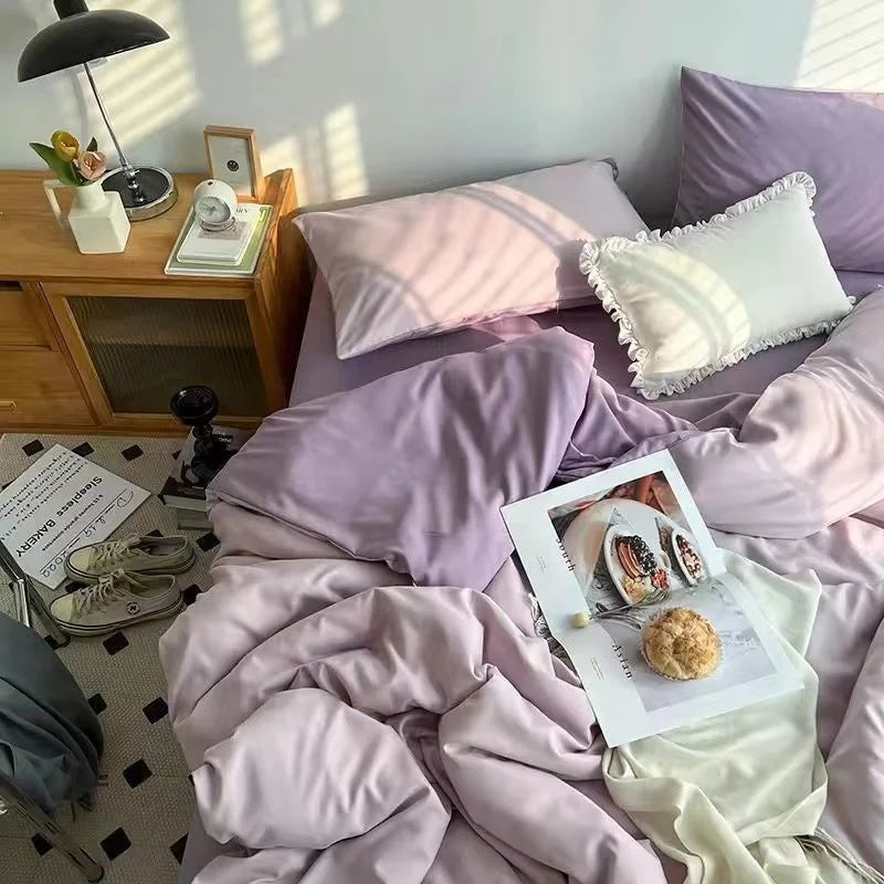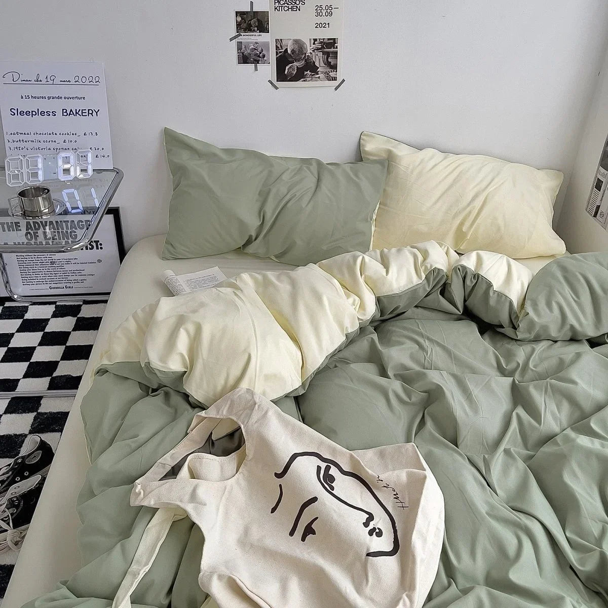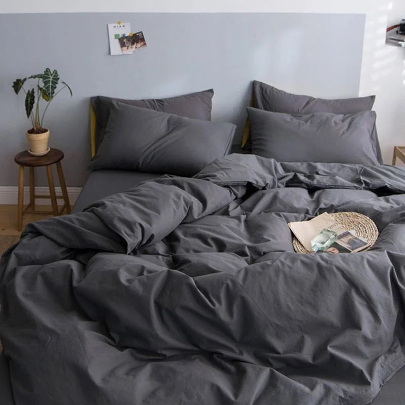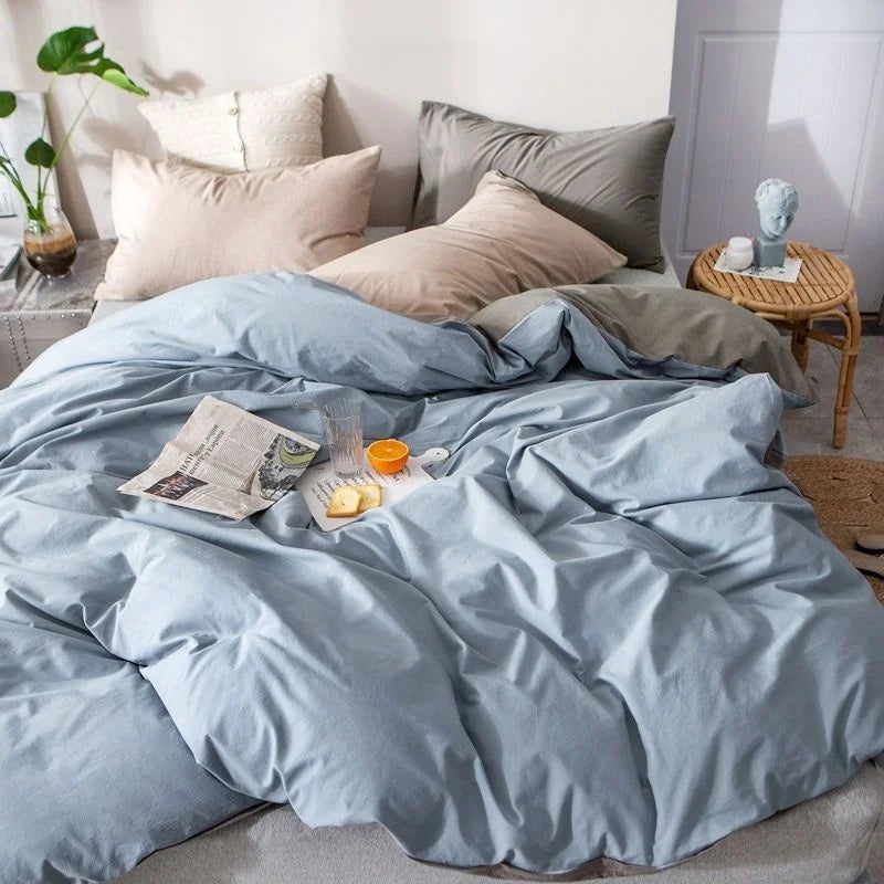 INS White And Blue Grey Solid Color Bedding Set Flat Bed Sheet Duvet Cover Double Full Queen King Bedclothes Pure Bedroom Linenis_customized: No