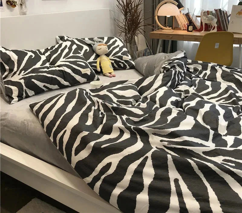 INS Zebra Pattern Bed Sheet Nordic Simple Quilt Cover Luxury Style 200x230 Black And White Duvet With Pillowcase Premium