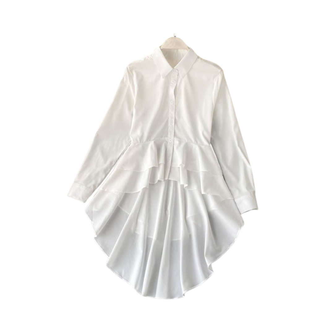 This stylish Irregular Ruffled Long Sleeved Shirt features a unique ruffled design. adding a touch of elegance to your look. The irregular cut creates a flattering fit and the long sleeves provide both warmth and style.