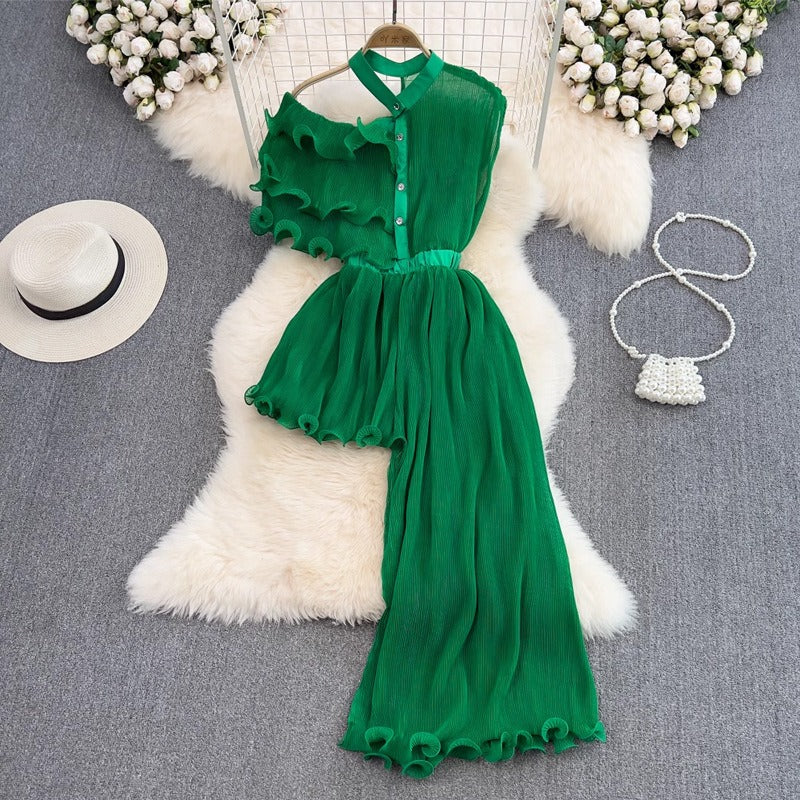 Expertly crafted with a flattering A-line silhouette and pleated detailing. our Irregular Waisted Dress adds a touch of sophistication to any wardrobe. Its unique design accentuates the waistline and creates a flowy. feminine look.