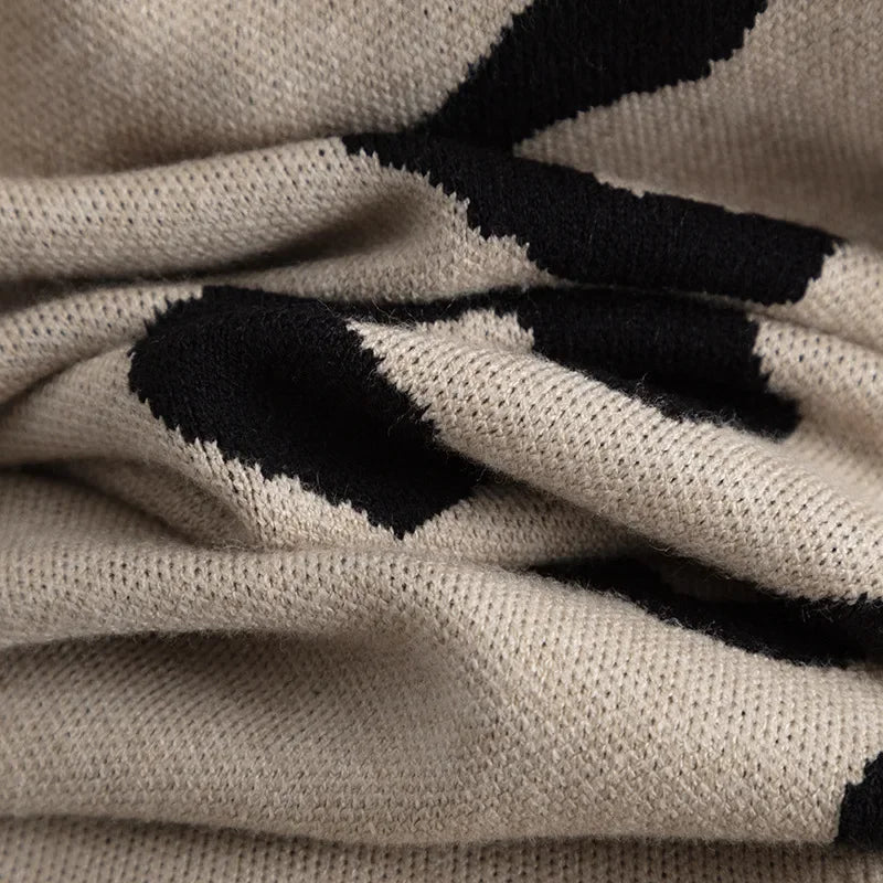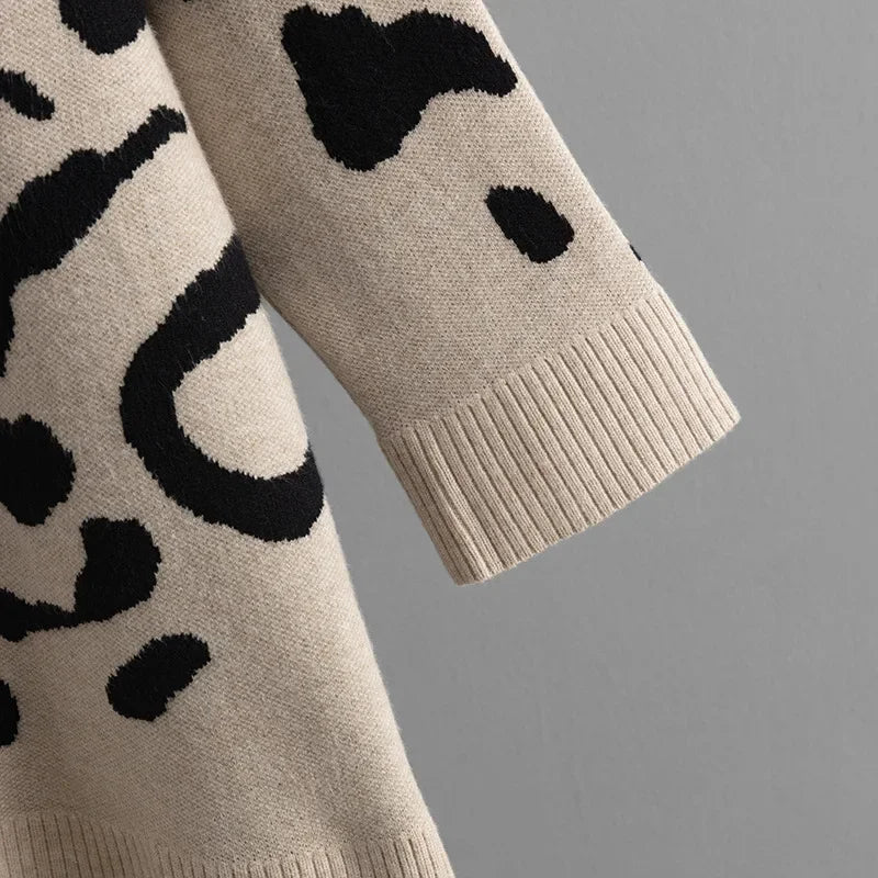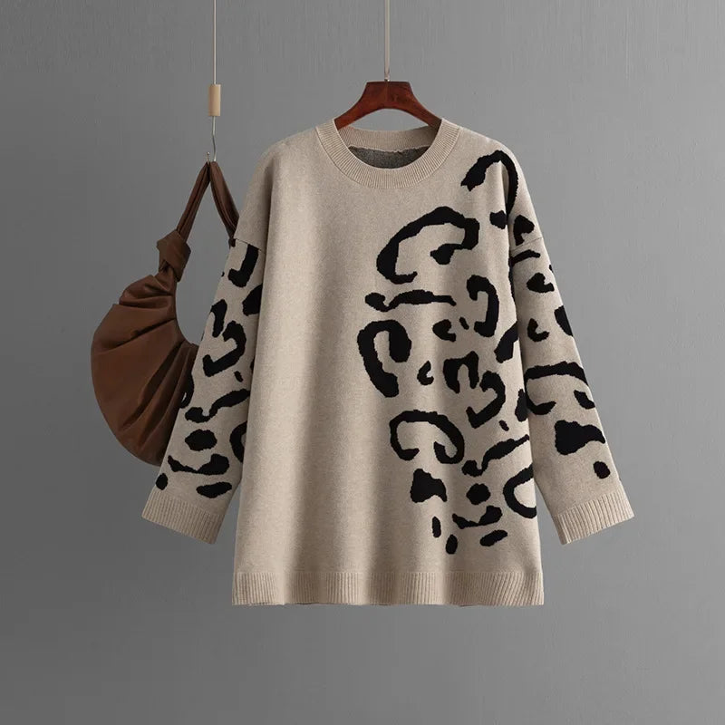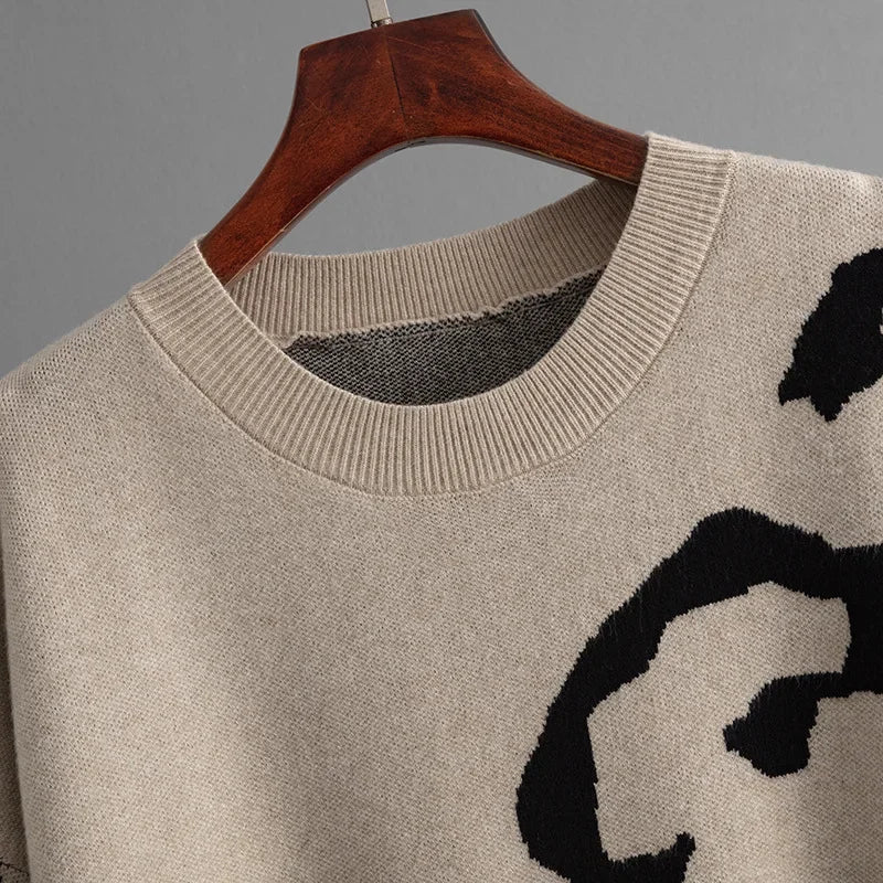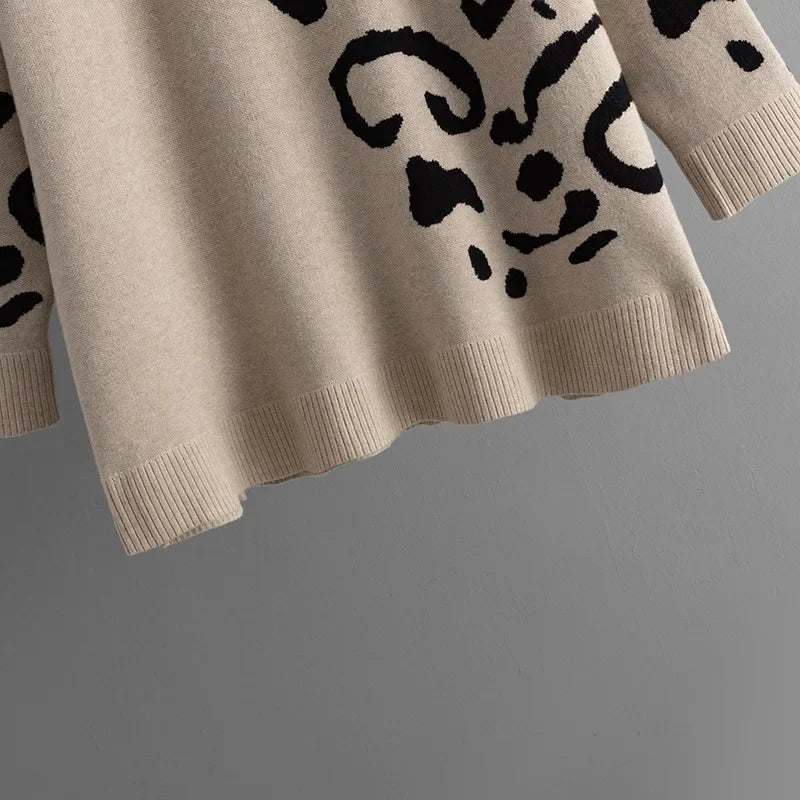 The intricate jacquard knit creates a beautiful leopard pattern. while the soft fabric keeps you warm and comfortable. A perfect combination of fashion and functionality. this sweater is a must-have for any wardrobe.