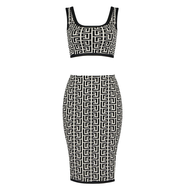 This set features a square neck crop top and a matching skirt. both made with jacquard fabric. Perfect for any occasion. this set will add a touch of elegance and sophistication to your wardrobe.