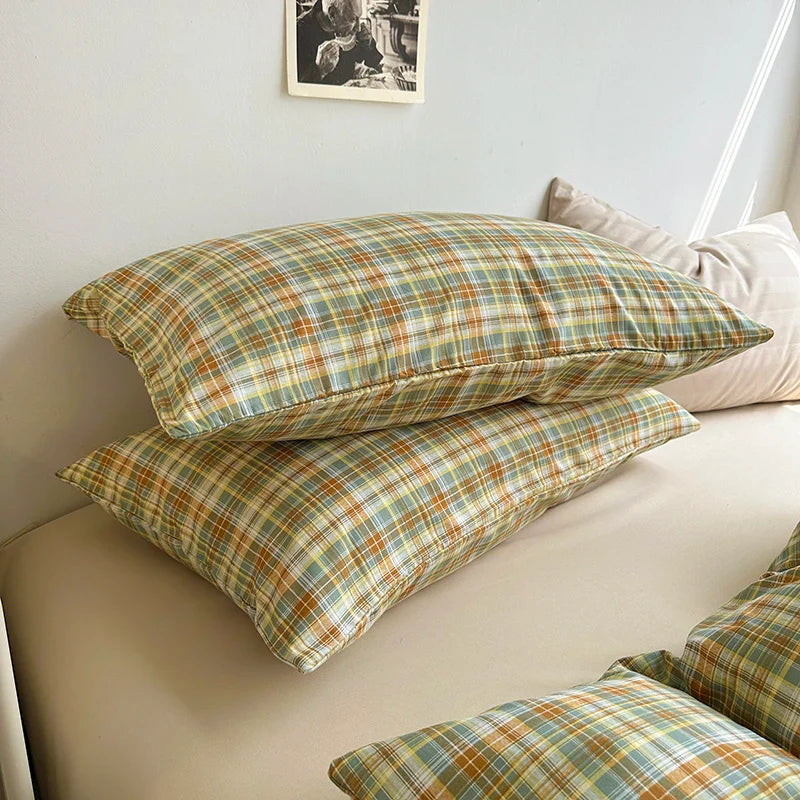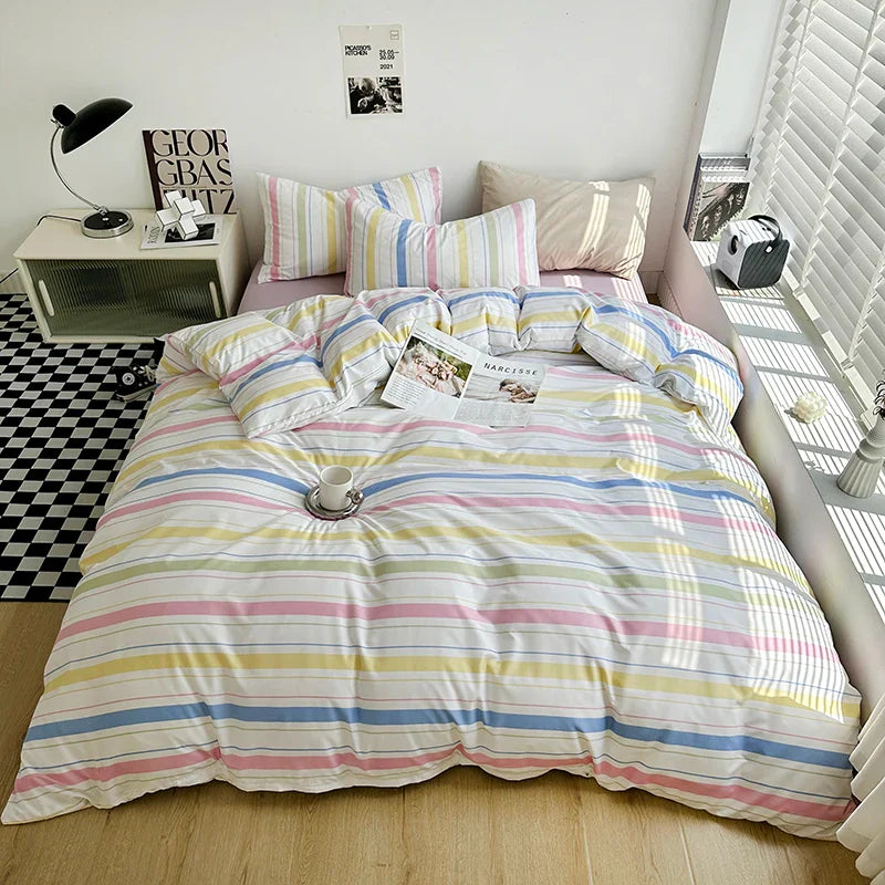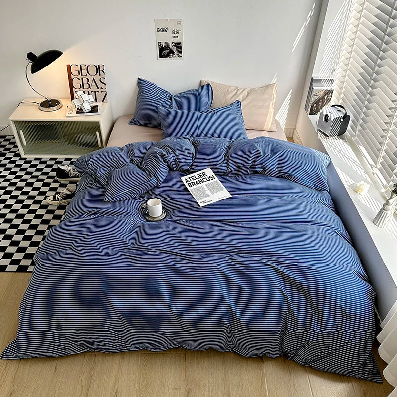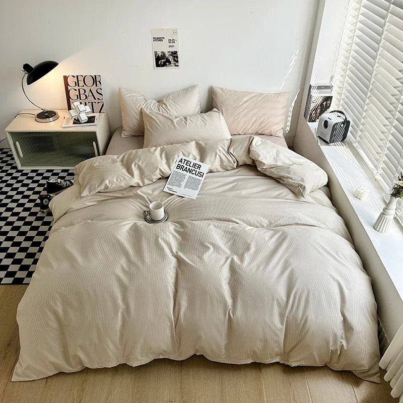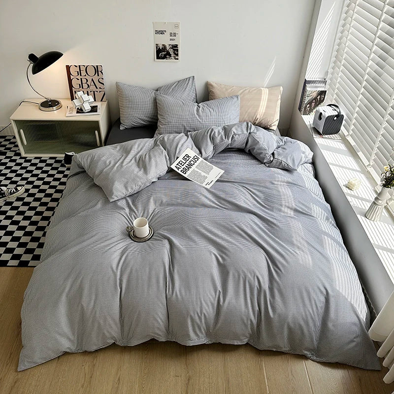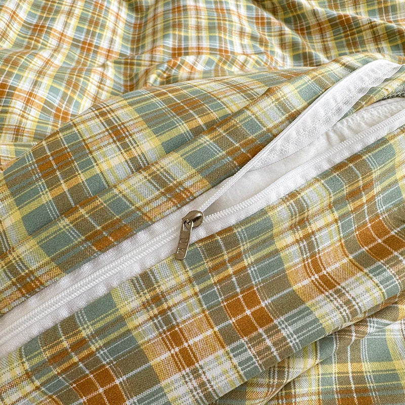 Japanese Simple Plaid Duvet Cover Set Retro Stripe Bedding 3PCS Soft Breathable Lightweight Quilt Covers Set with Zipper Closure