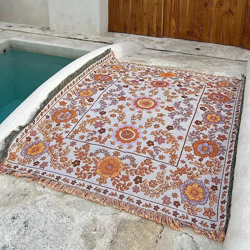 【Multifunctional Design】The throw can be used as a sofa blanket. tablecloth. carpet. or tapestry