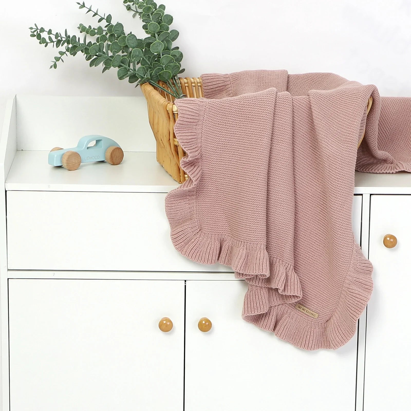 Knitted Baby Swaddle Blanket for New Born Babies Accessories Ruffle Stroller Blanket Bedding items Infant Nap Bed Cover