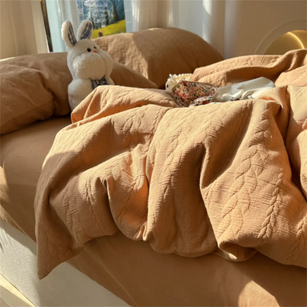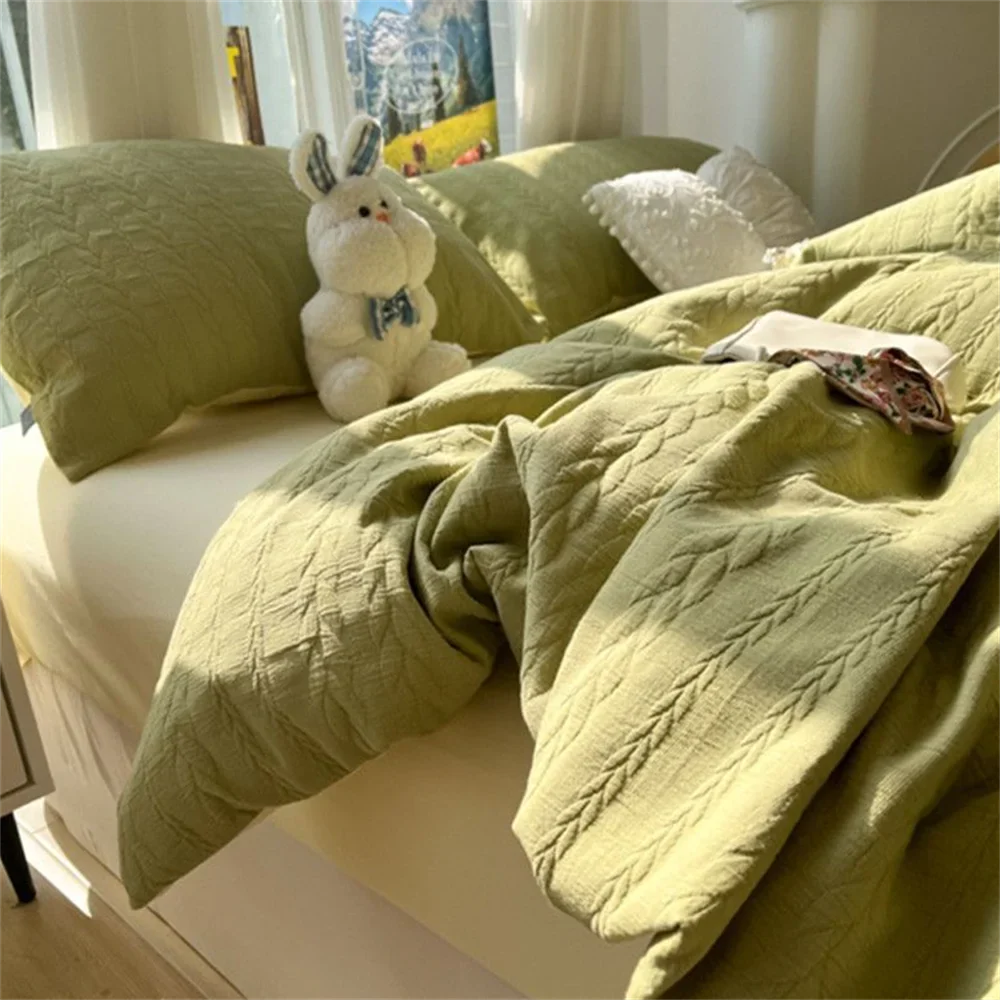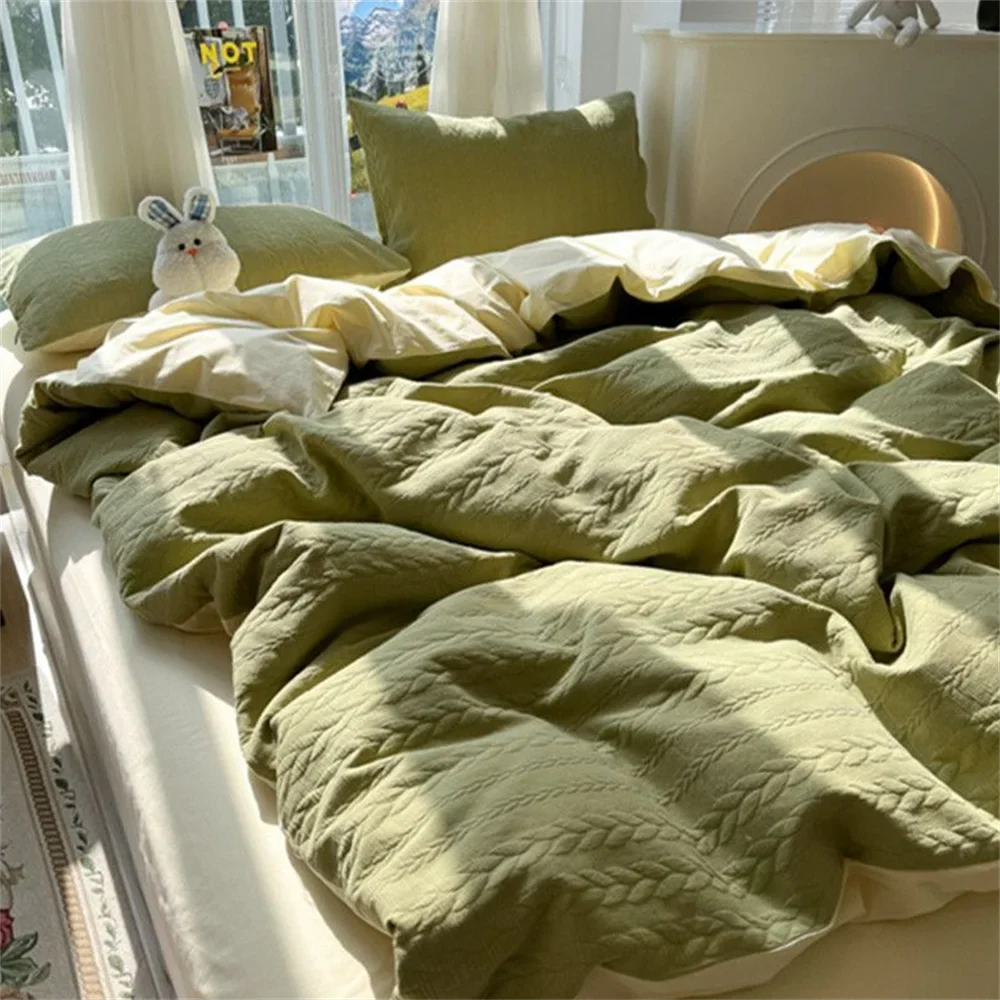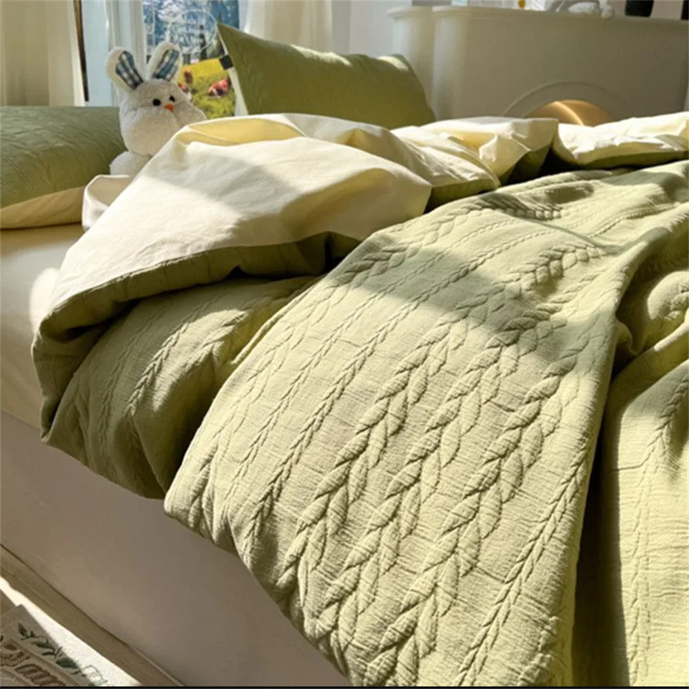 Knitted Washed Cotton Bed Four Piece Set with Ins Style Simple and High-end Feeling. Bed Sheet Duvet Set Three Piece Set
